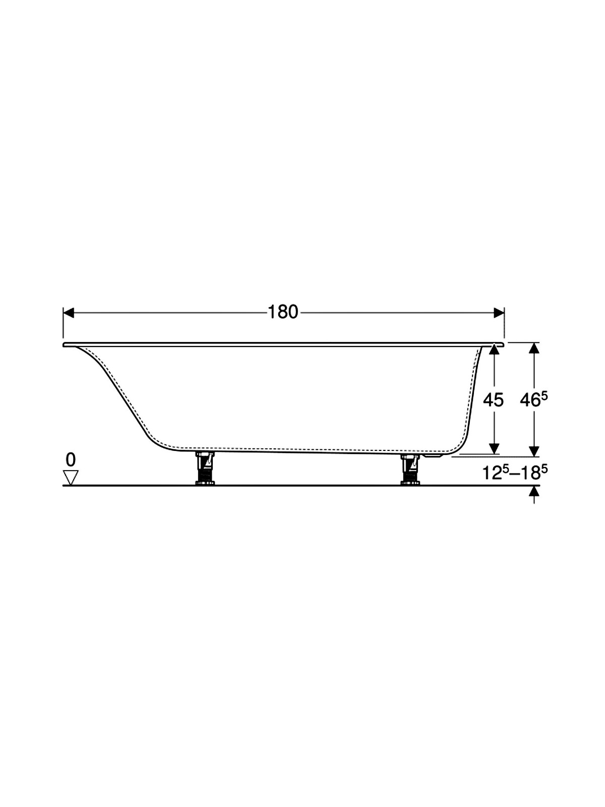 554.015.01.1 Soana Ванна прямокутна 180x80см, тонкий край, злив та перелив в зоні ніг, з ніжками 891.677.00.0, колір білий (1 сорт)