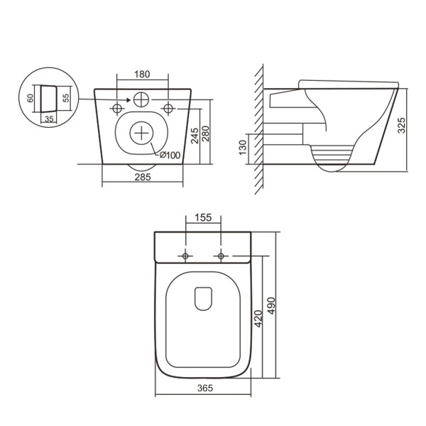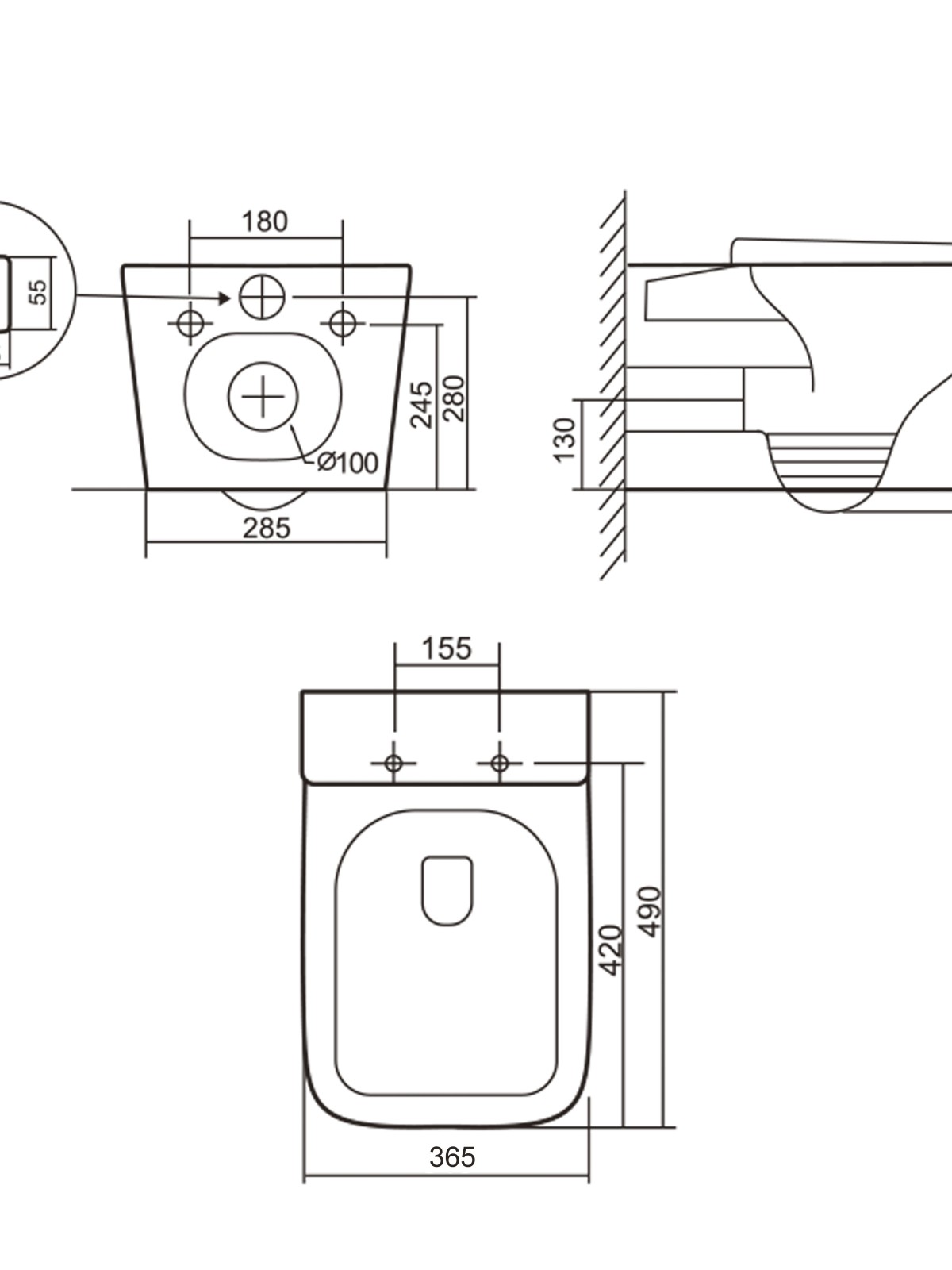 Зливний вихід: Один отвір справа біля краю безобідкової чаші з технологією змиву Tornado 3