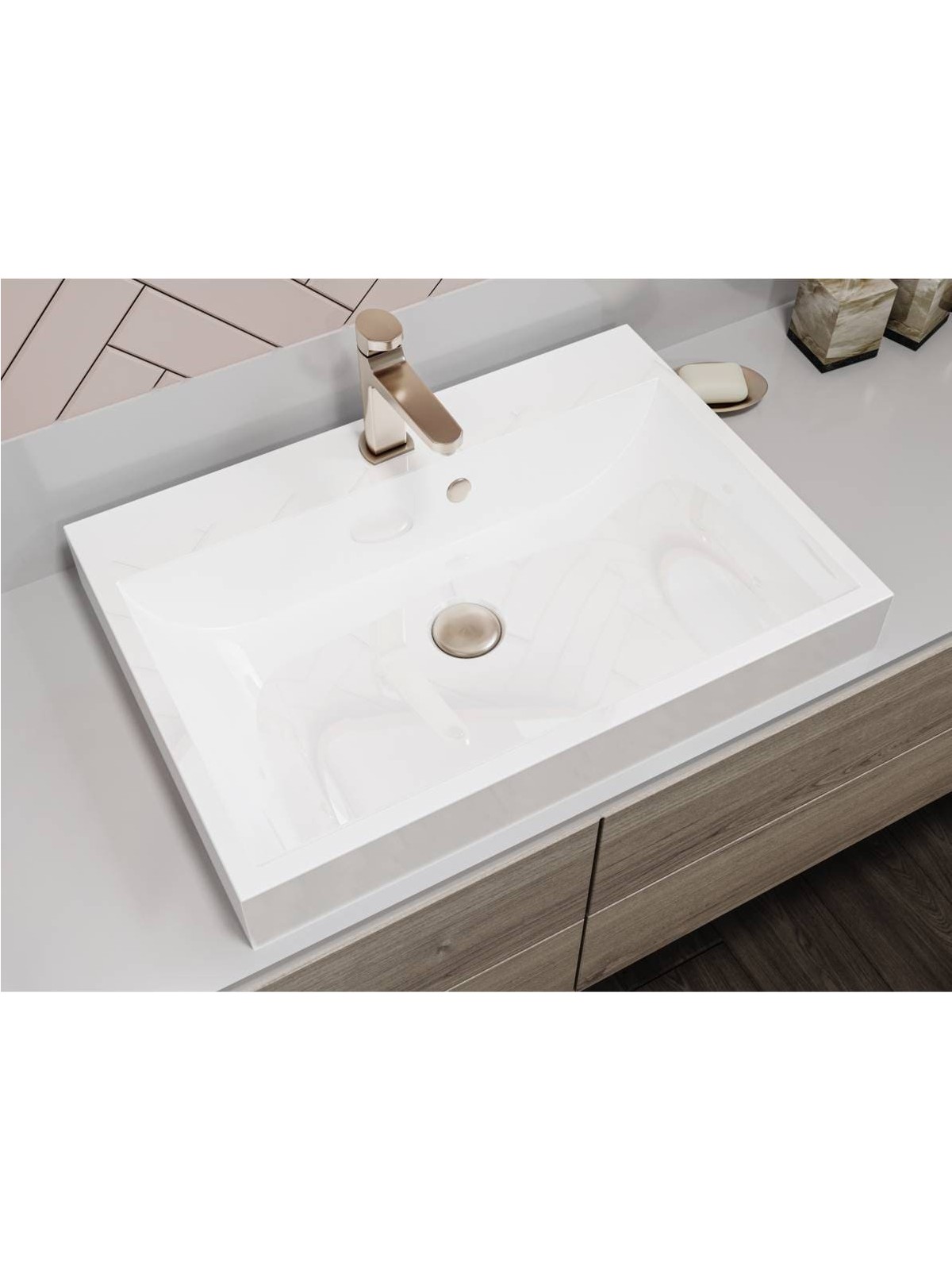 Прямокутний за формою чаші раковина має тип монтажу - врізний;на тумбу, врахуйте це перед замовленням меблів у ванну кімнату.