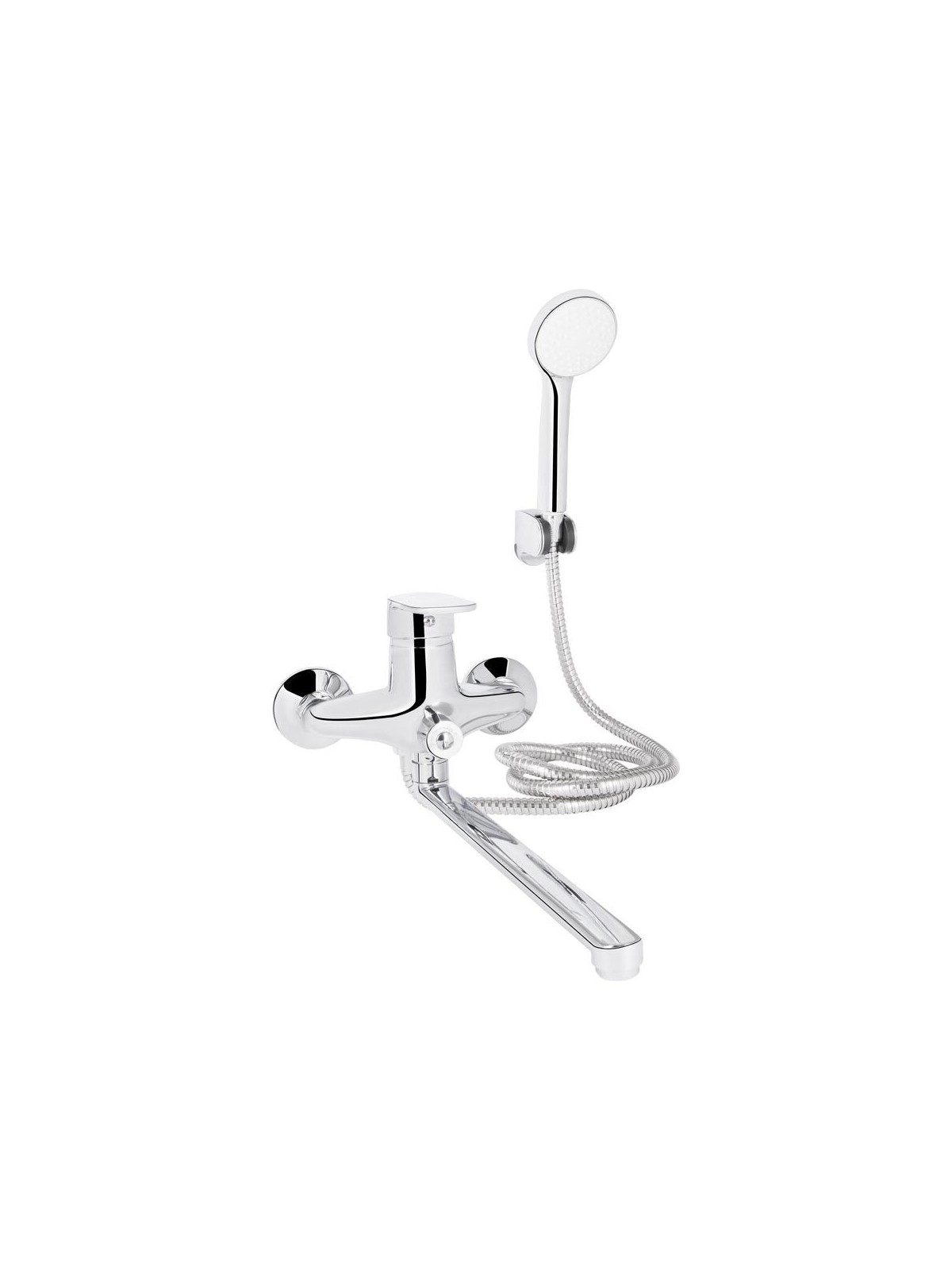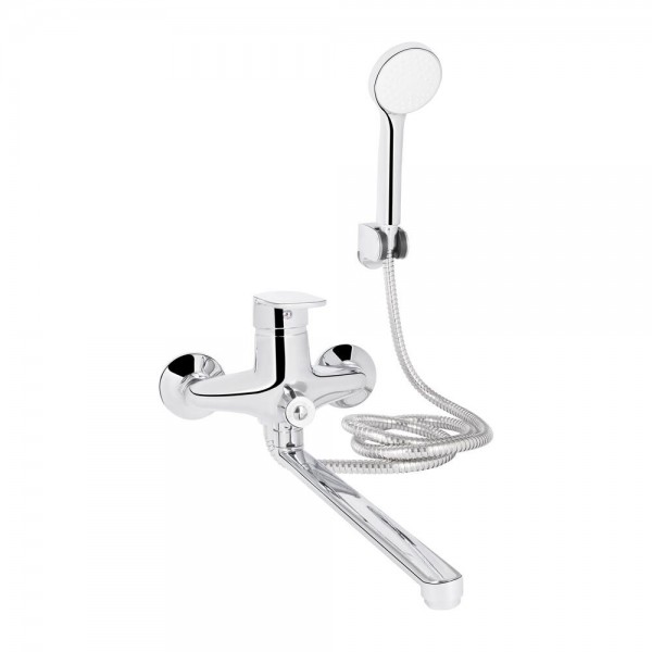 Змішувач для ванни Lidz Tani 0052 з довгим поворотним виливом виготовлений із цинку, укомплектований кронштейном для ручного душу, душовим шлангом та лійкою. Завдяки хромованому покриттю має міцну поверхню та привабливий зовнішній вигляд. Декоративні розетки приховують похибки установки на оздобленні кімнати. Напір води та її температура регулюються поворотом важеля в потрібне положення. Перемикання ванни/души здійснюється за допомогою дивертора.