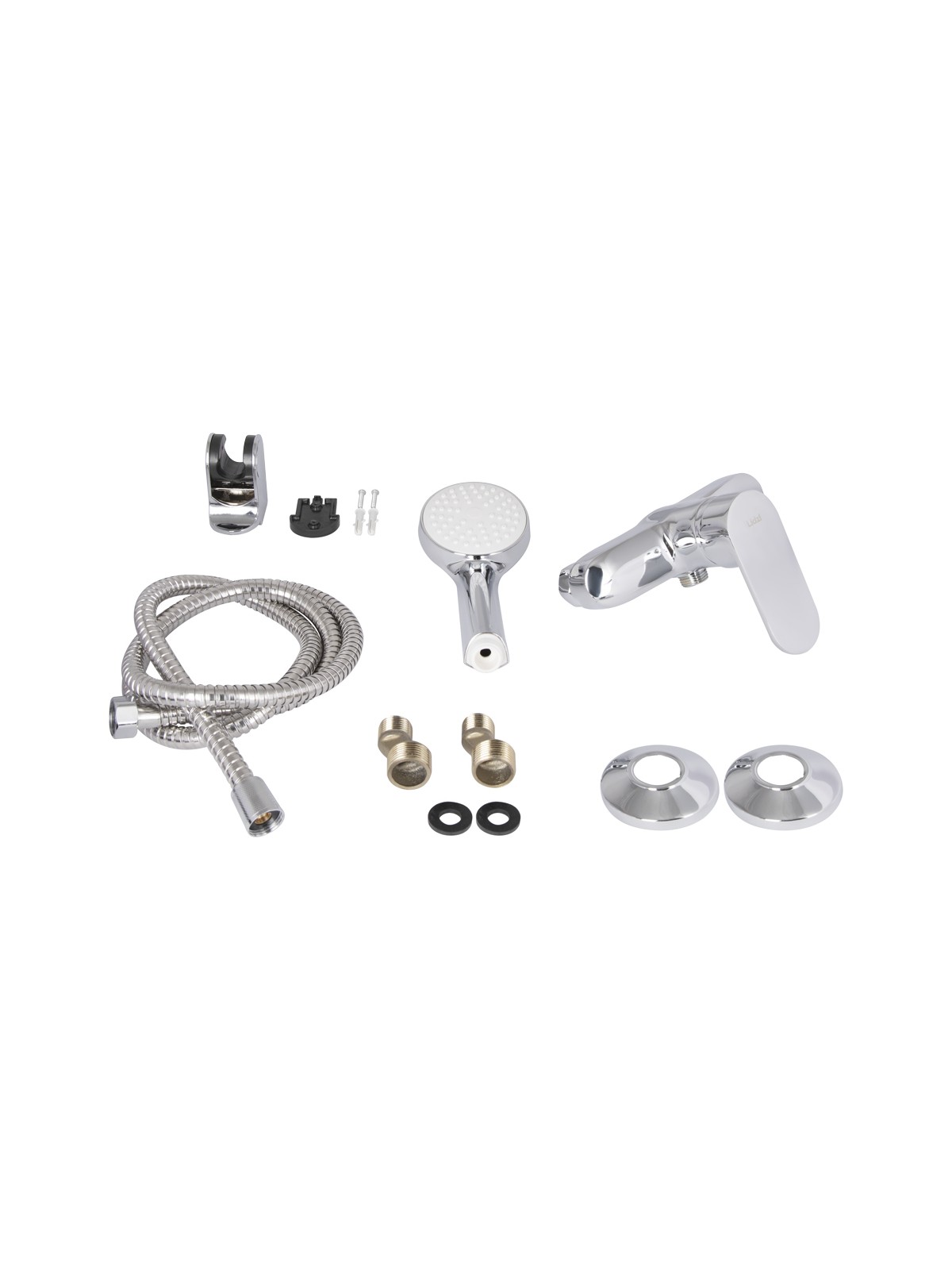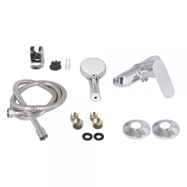Комплектація: Змішувач, душовий шланг, лійка для ручного душу, кронштейн для ручного душу, кріплення.