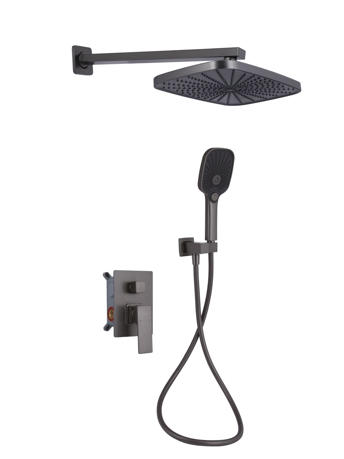 Душова система для душу прихованого монтажу на два споживачі Qtap Gemini QTGEM113GMB45698 у виконанні Gunmetal Black PVD відрізняється стильним дизайном та високою міцністю. Система включає верхній та ручний душ, що робить її зручним та функціональним рішенням для ванної кімнати. Покриття Gunmetal Black PVD стійке до корозії та зносу, забезпечуючи тривалий термін служби виробу.