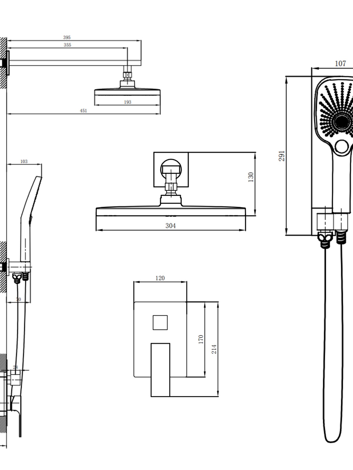 Комплектація: Змішувач, лійка для ручного душу, душовий шланг, кронштейн, деталі кріплення.
