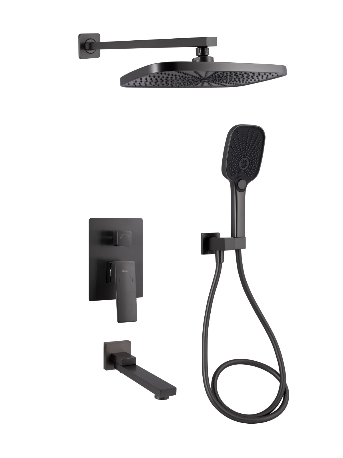 Душова система для душу прихованого монтажу на три споживачі QTGEM114GMB45704 у виконанні Gunmetal Black PVD відрізняється стильним дизайном та високою міцністю. Система включає верхній та ручний душ, що робить її зручним та функціональним рішенням для ванної кімнати. Покриття Gunmetal Black PVD стійке до корозії та зносу, забезпечуючи тривалий термін служби виробу.