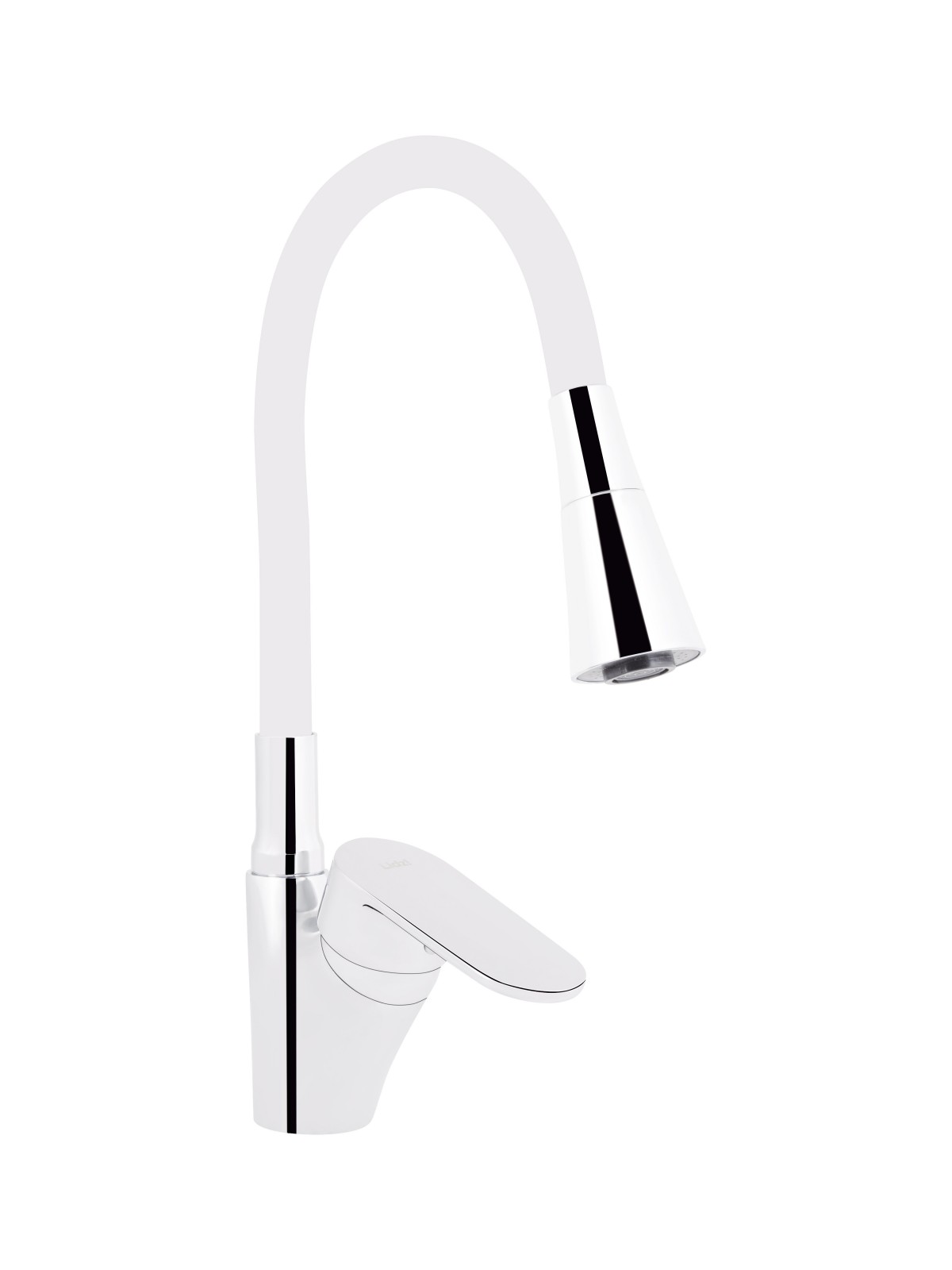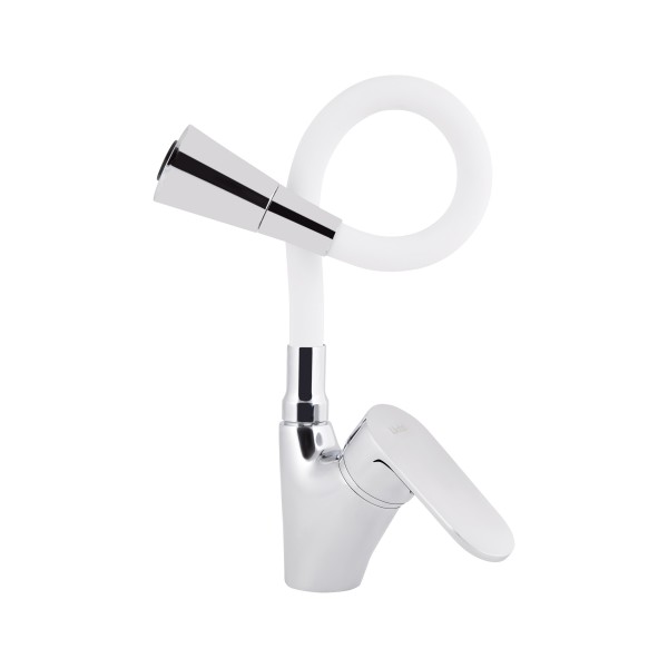 Змішувач для кухні Lidz Tani 007F3 з гнучким виливом - ідеальний вибір для тих, хто цінує стиль та зручність. Гнучкий вилив змішувача дозволяє легко спрямовувати потік води, забезпечуючи комфорт у використанні, а біле покриття надає змішувачу сучасного та витонченого вигляду.