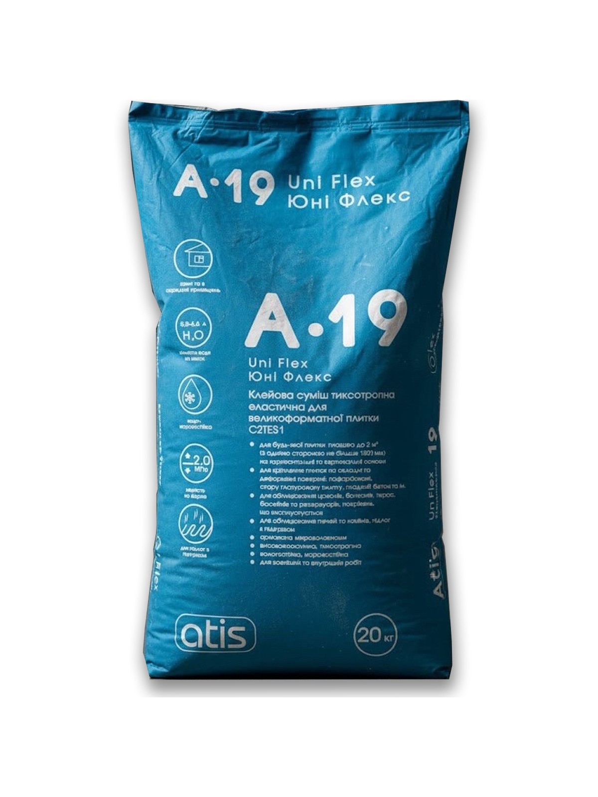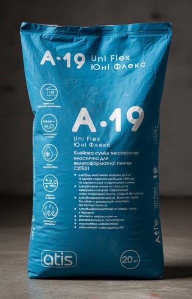 Клей високоеластичний ATIS A-19 Uni Flex 20кг (сірий) C2TE S1 (1 сорт)