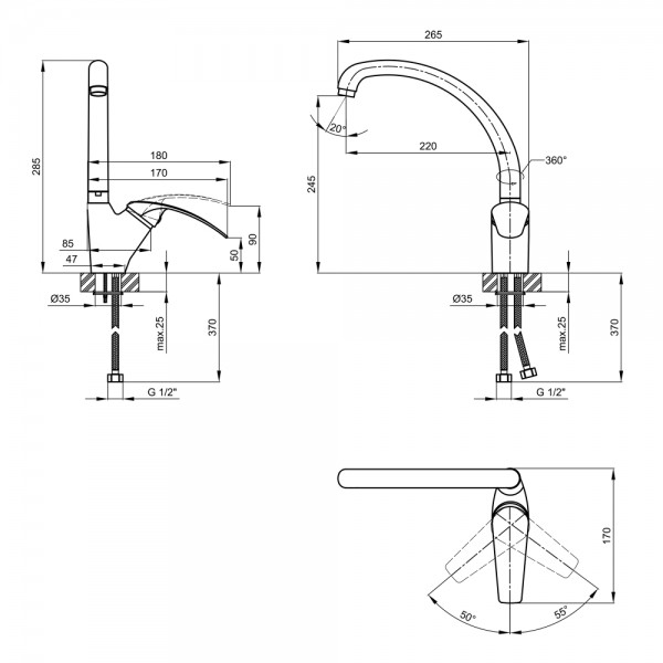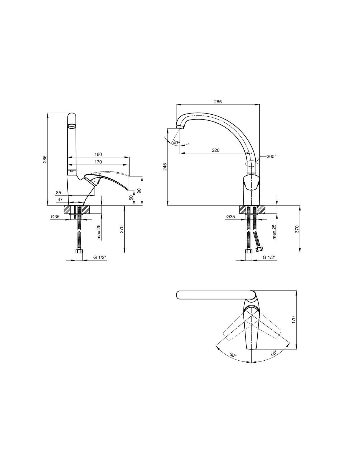 Додаткові характеристики: Довжина гнучкого підводу - 370 мм.
