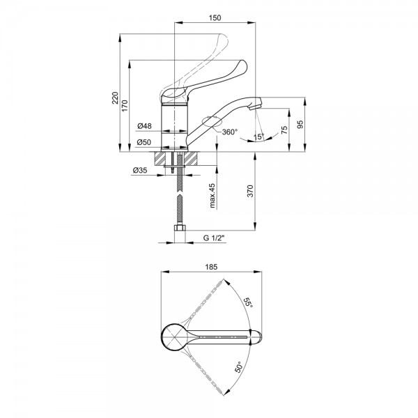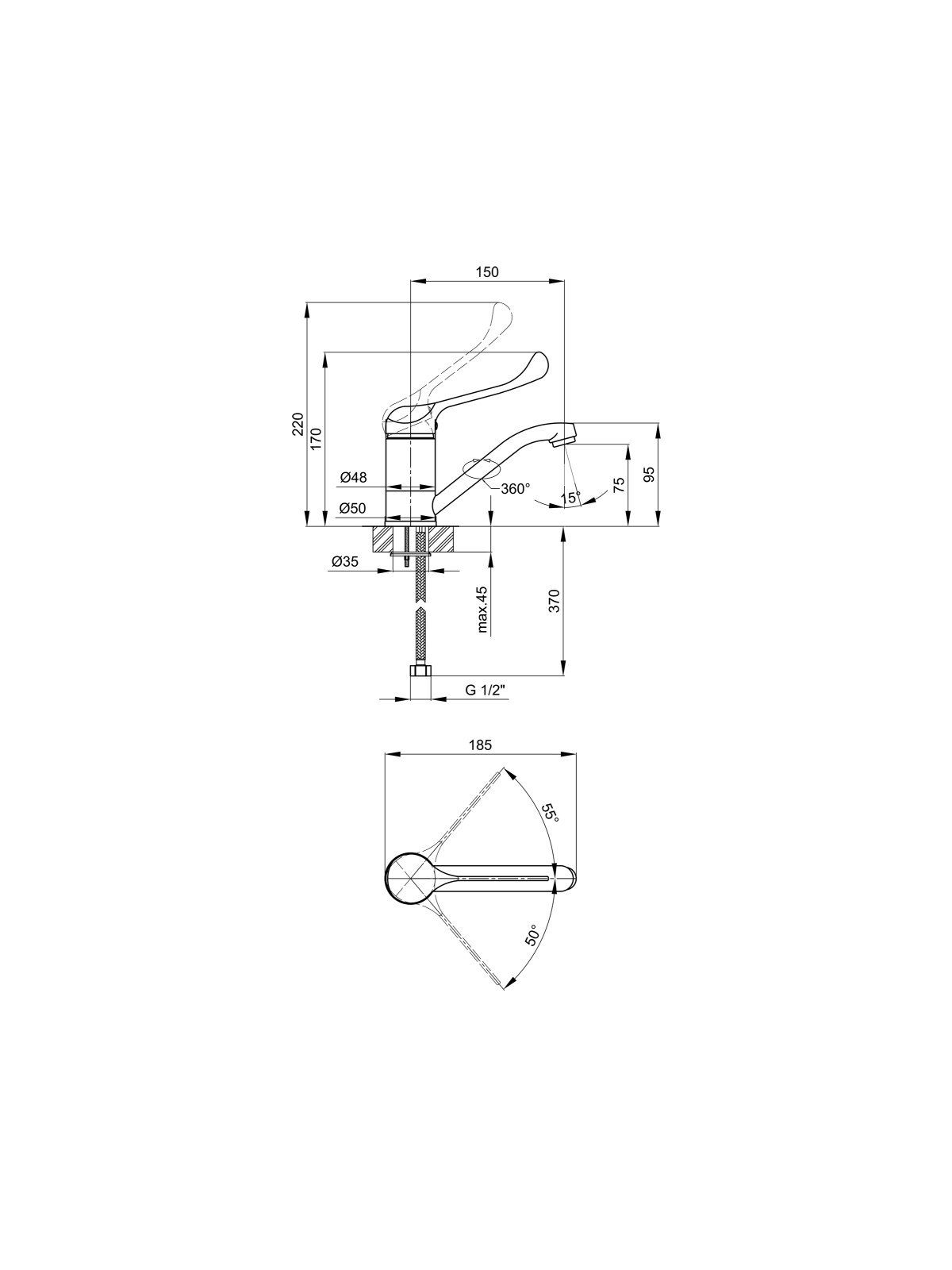 Додаткові характеристики: Довжина гнучкого підводу - 370 мм.