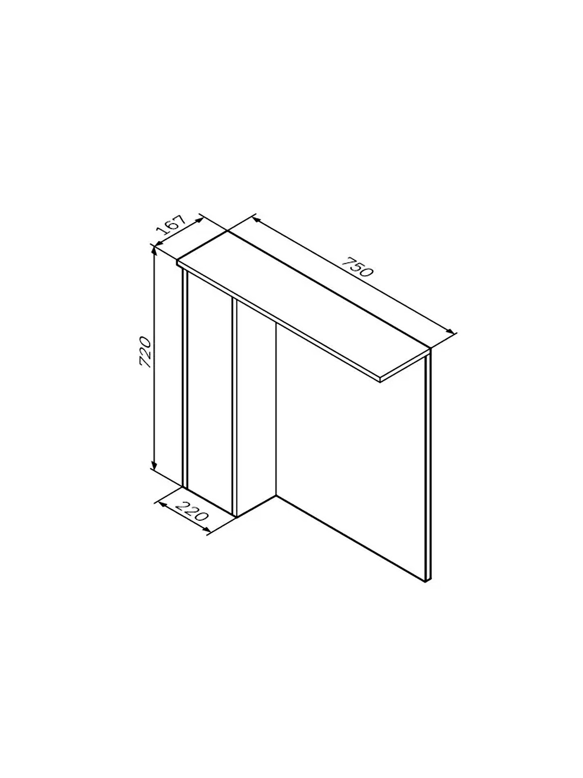 M91MPL0751BF38 GEM S, Дзеркало, частково дзеркальна шафа, ліва,75 см,з підсвічуванням, білий/базальт (1 сорт)
