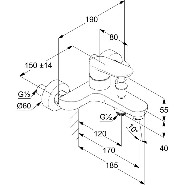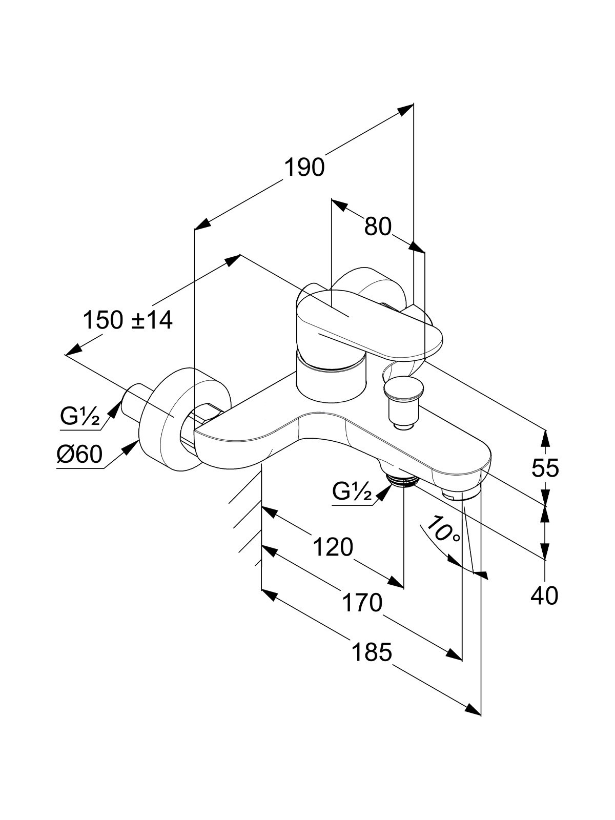 326910575 KLUDI-X1 Змішувач для ванни, хром (1 сорт)