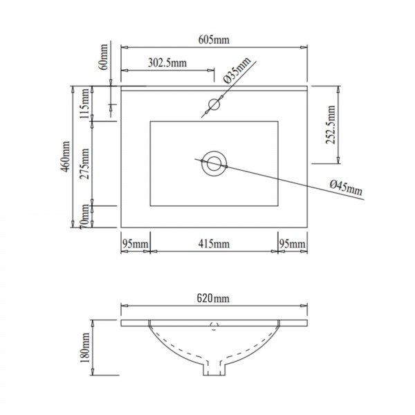 Раковина Qtap Albatross QT01113060CW1 виконана з кераміки в білому кольорі прямокутної форми. Дно чаші злегка увігнуте. На раковині передбачено отвір під змішувач, а також отвір для переливу. Раковина монтується в стільницю, що має естетичний вигляд, економить місце і приховує всі підводи.