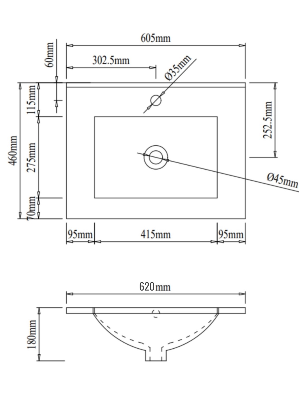 Габаритні розміри виробу (ШхГхВ), мм: 620х460х180