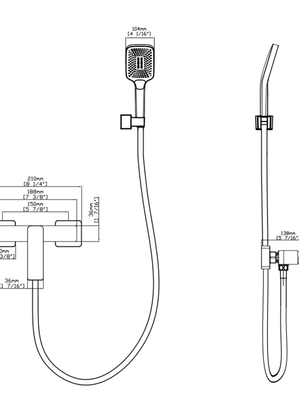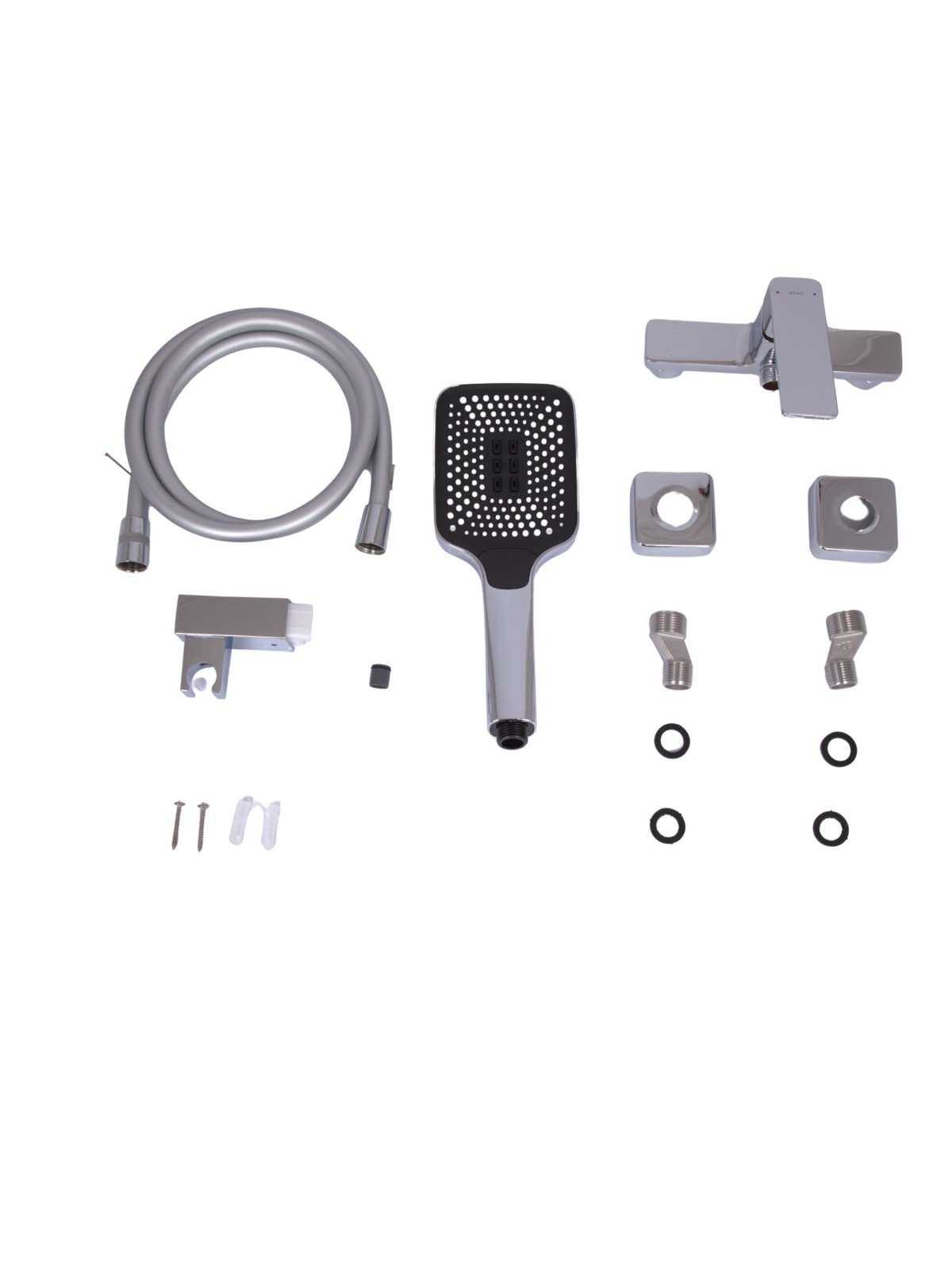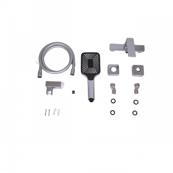 Комплектація: Змішувач, лійка для ручного душу, душовий шланг, кронштейн для ручного душу, кріплення.