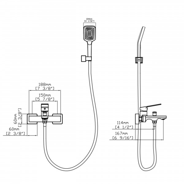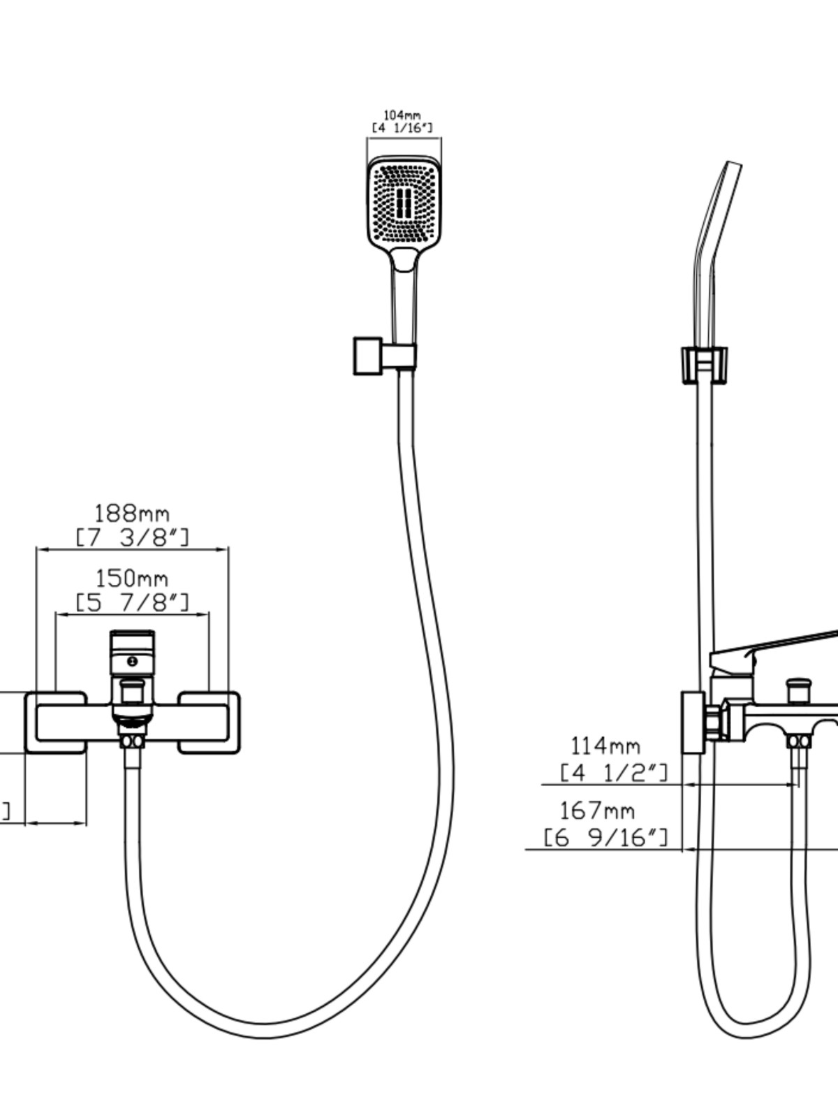 Комплектація: Змішувач, лійка для ручного душу, душовий шланг, кронштейн для ручного душу, кріплення.
