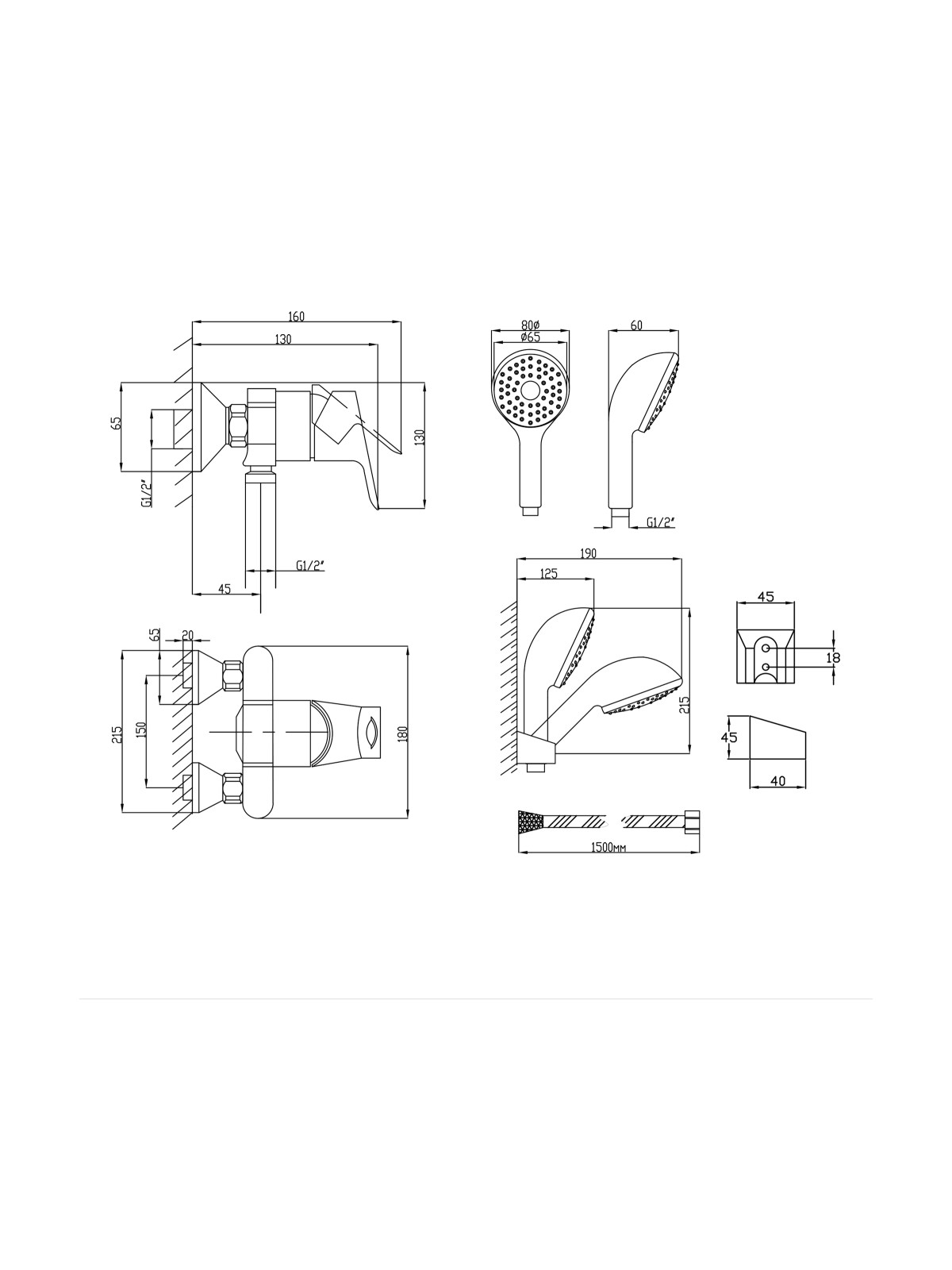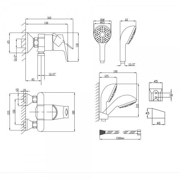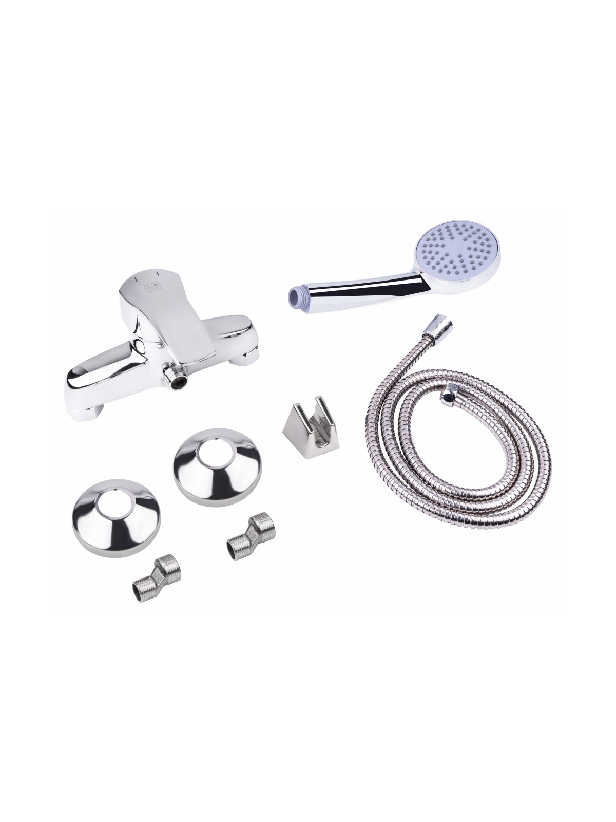 Комплектація: Змішувач, душовий шланг, лійка для ручного душу, кронштейн для ручного душу, кріплення.
