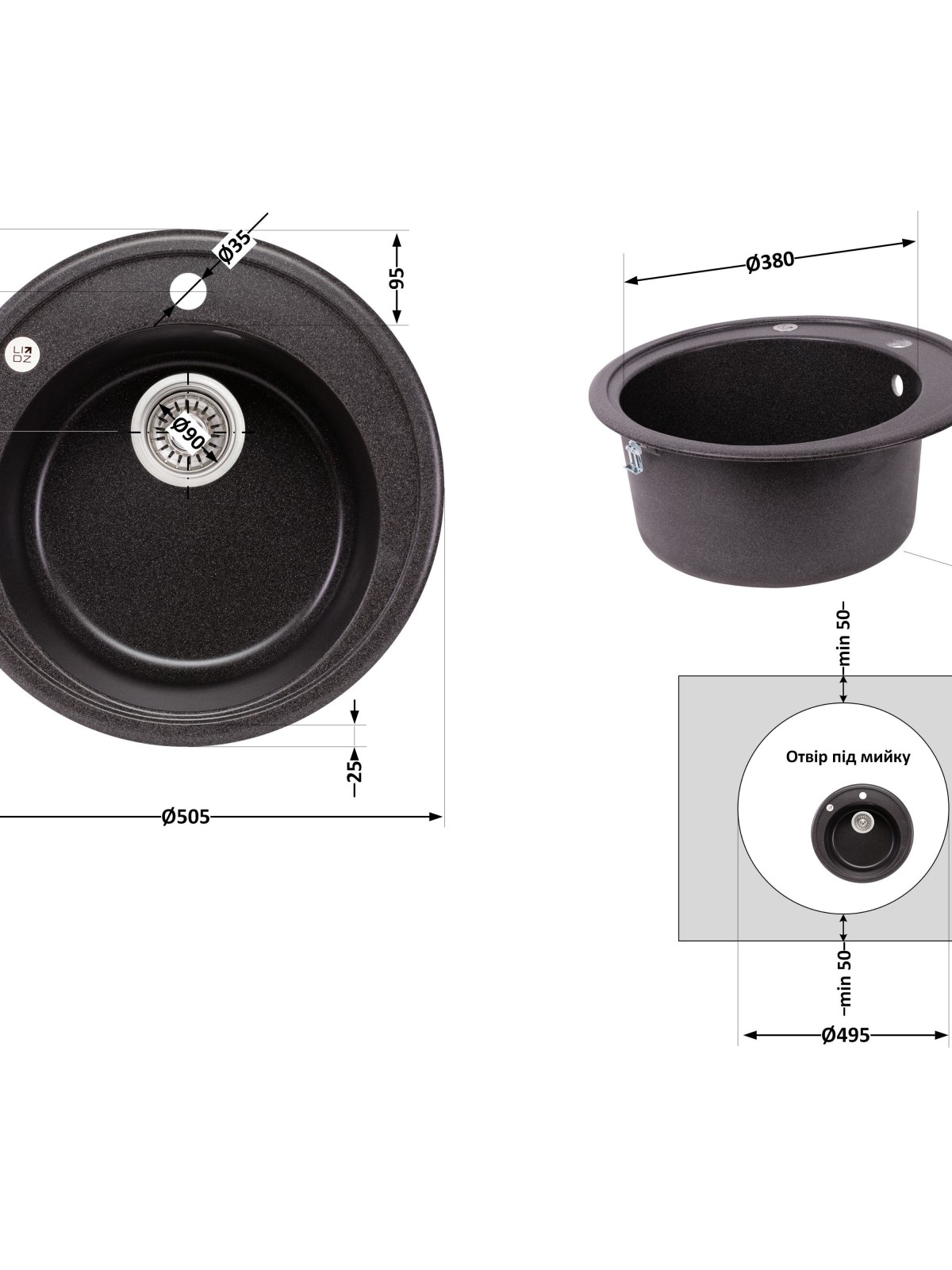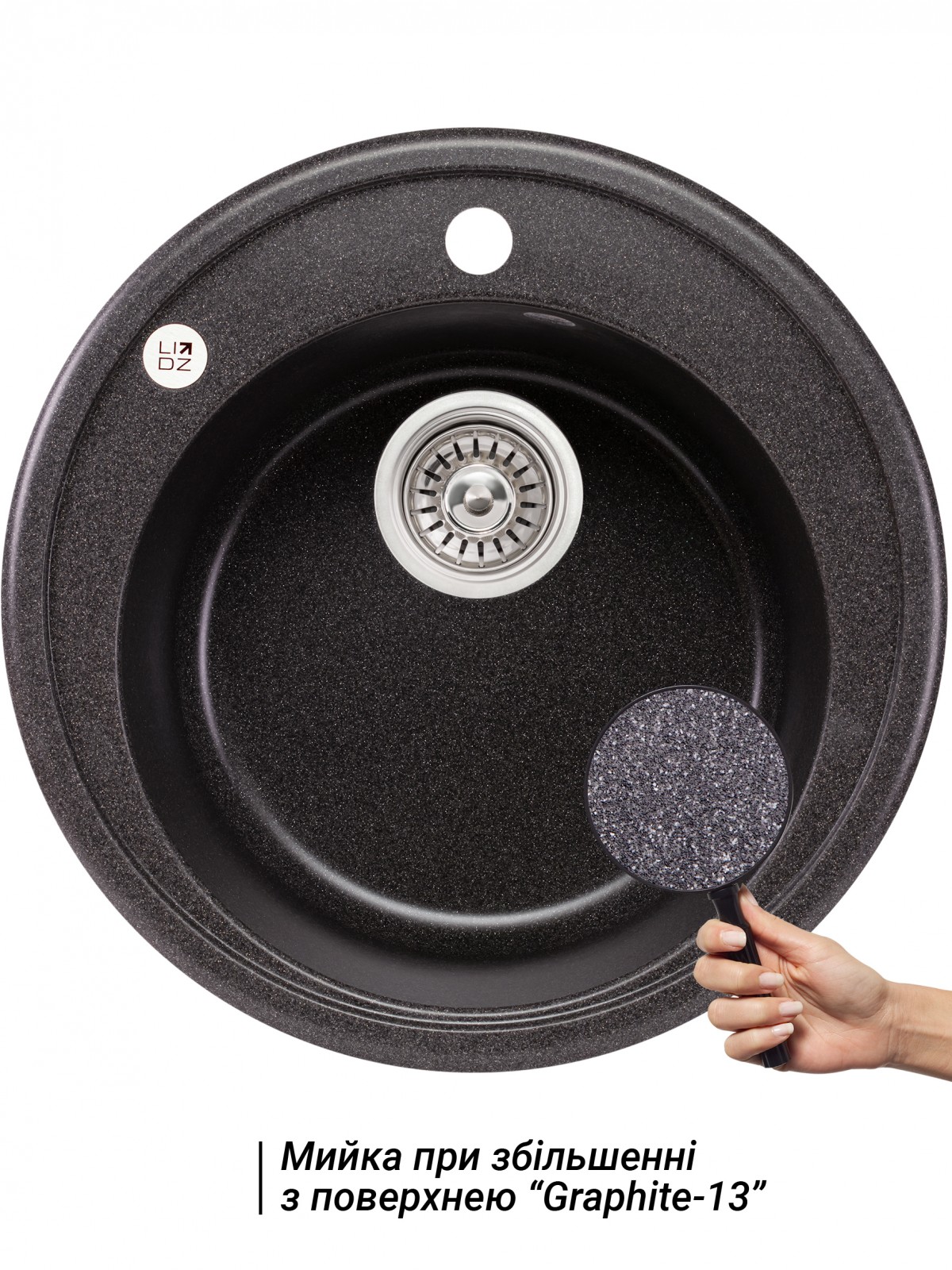 Кругла кухонна мийка Lidz (GRF-13) namp;#8212; компактне та практичне рішення для будь-якої кухні. Врізна мийка з міцного штучного каменю стійка до пошкоджень, перепадів температур і впливу побутової хімії. Завдяки лаконічній круглій формі ідеально підходить для невеликих кухонь або кухонних зон, забезпечуючи комфорт у щоденному використанні. У комплект входить сифон і злив-перелив для зручного монтажу.