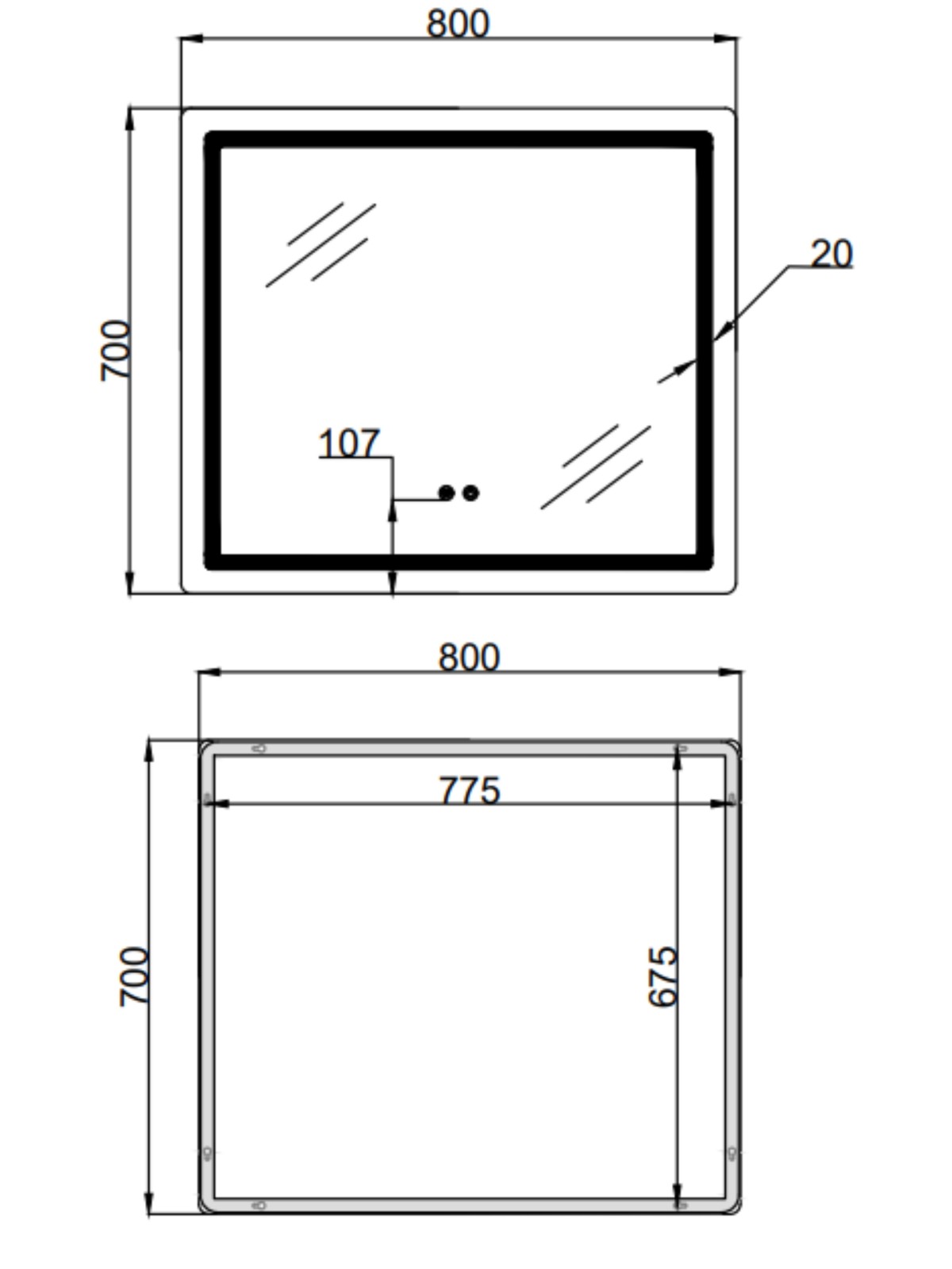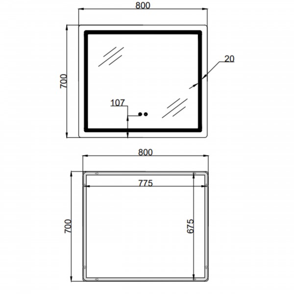 Настінне дзеркало Qtap Mideya MI2 (800namp;#215;700 мм) namp;#8212; сучасне та функціональне рішення для ванної кімнати. Стильний прямокутний дизайн доповнено LED-підсвіткою з сенсорним керуванням Touch, функцією антизапотівання, димером і регулюванням яскравості namp;#8212; для комфорту за будь-яких умов освітлення.
