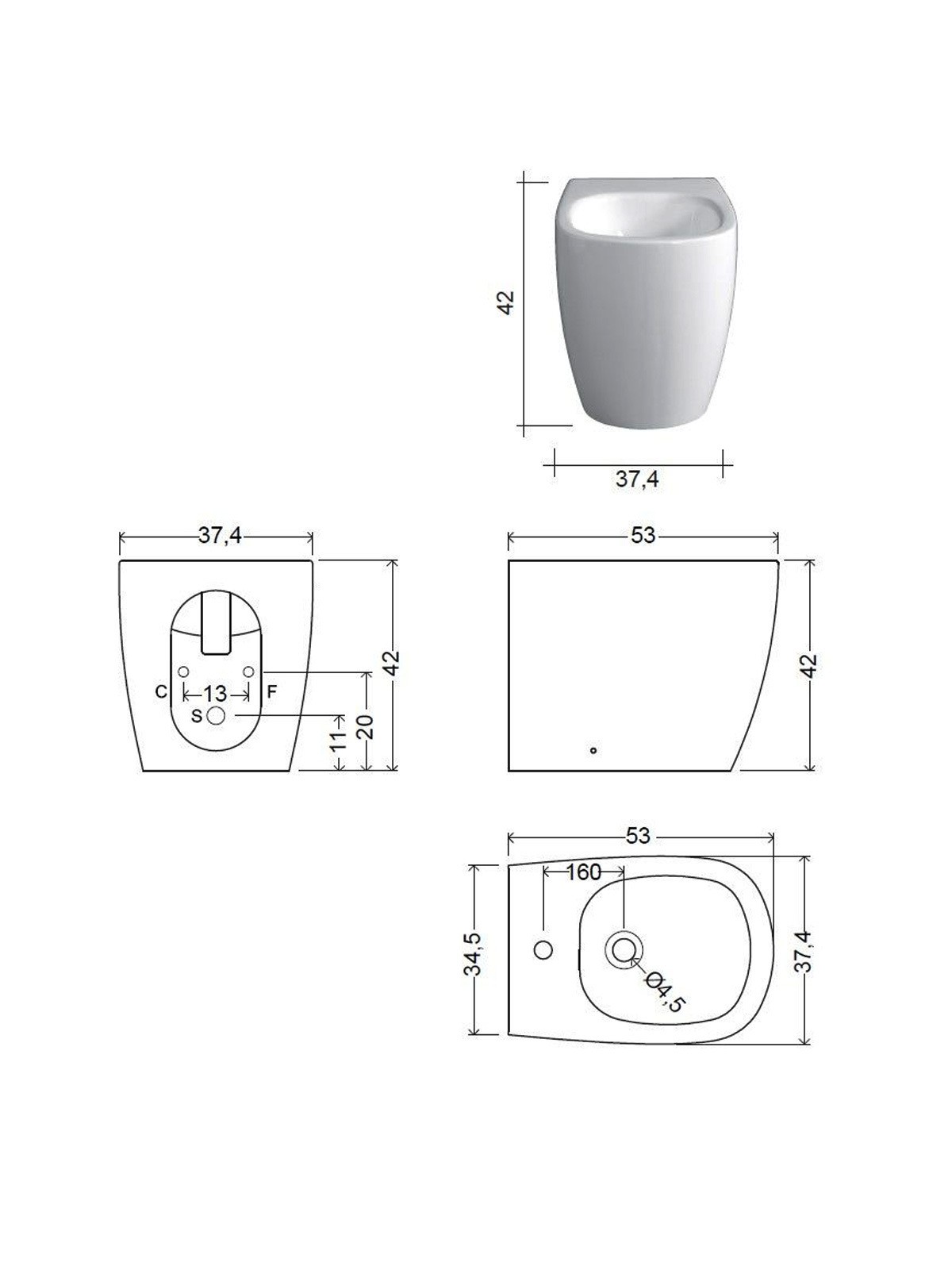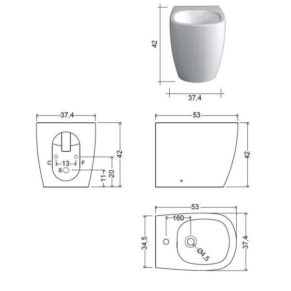 004 432 003 OVVIO Біде підлогове, приставне до стіни, колір білий мат (1 сорт)