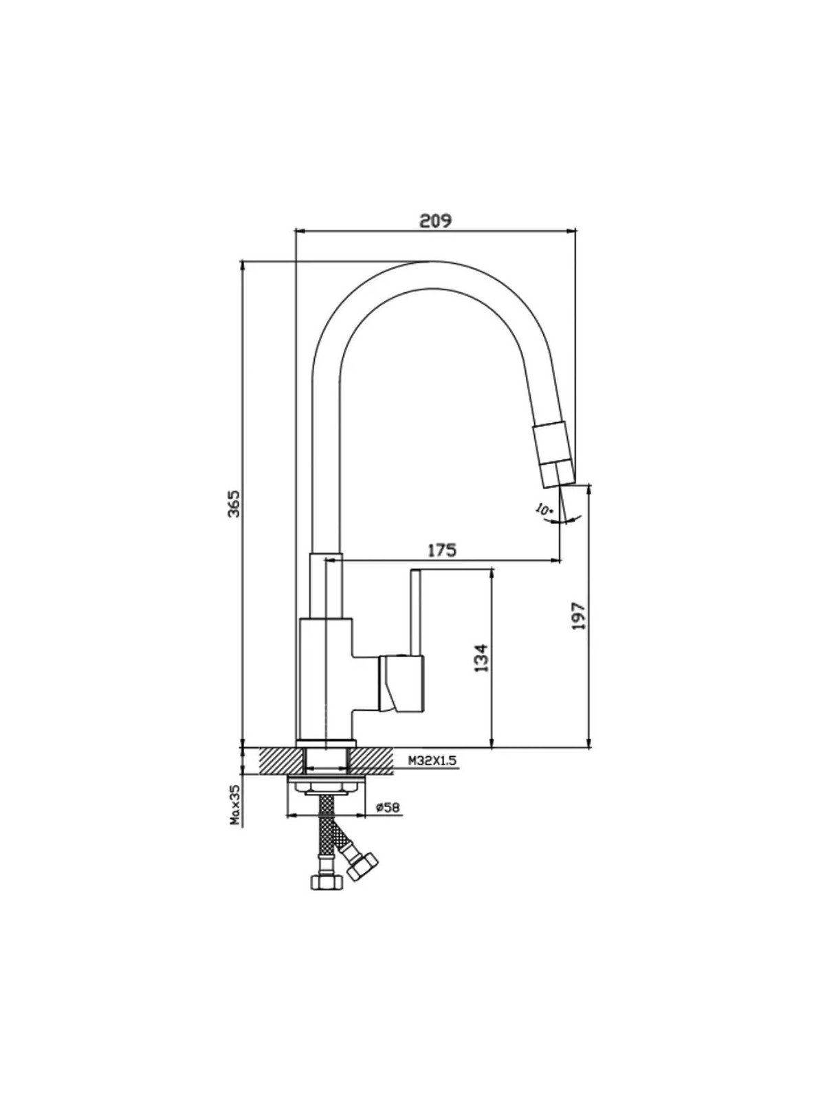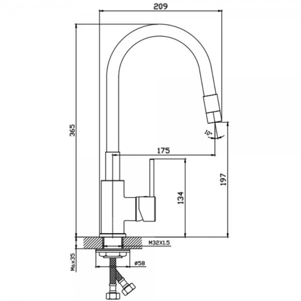 5417031 Nova Змішувач д/кухні з гнучким виливом, хром (1 сорт)