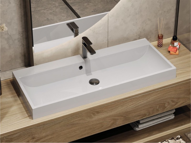 Прямокутний за формою чаші раковина має тип монтажу - врізний;на тумбу, врахуйте це перед замовленням меблів у ванну кімнату.