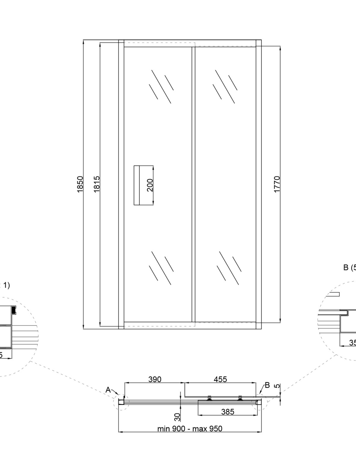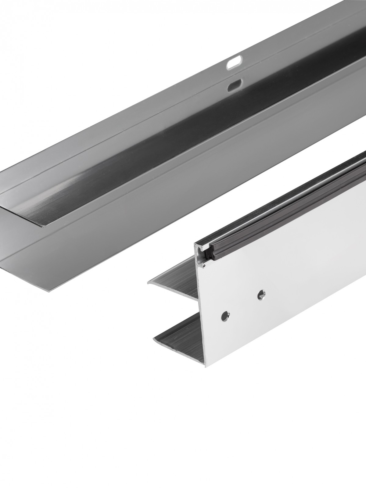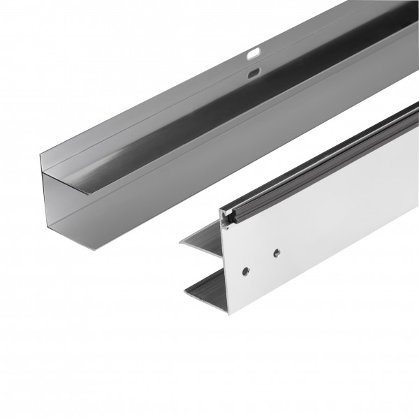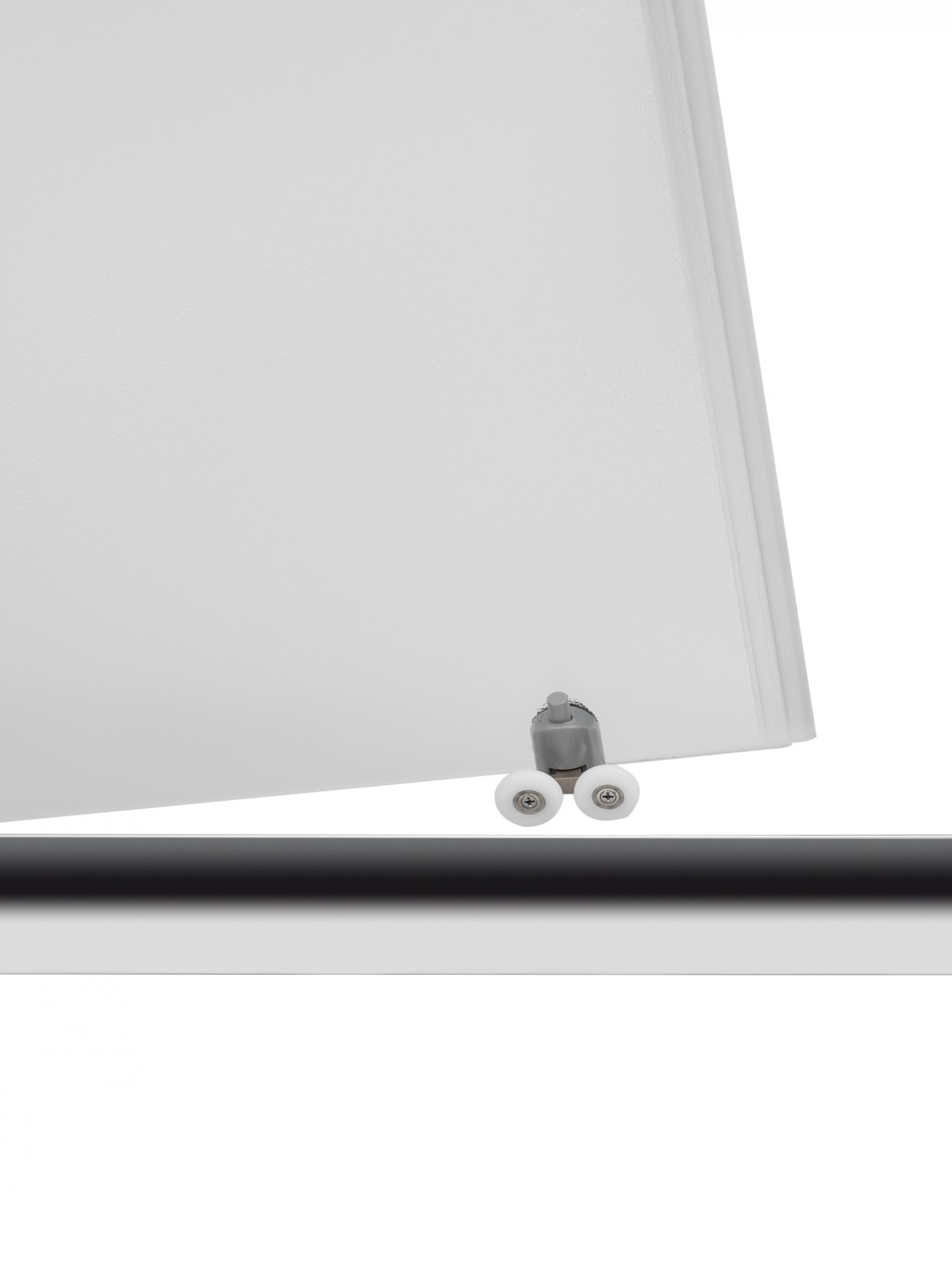 Комплектація: Глухе скло, скляні двері, розширювальні профілі, верхній профіль, нижній профіль, ручка, подвійні ролики, комплект кріплень, набір ущільнювачів, заглушки.