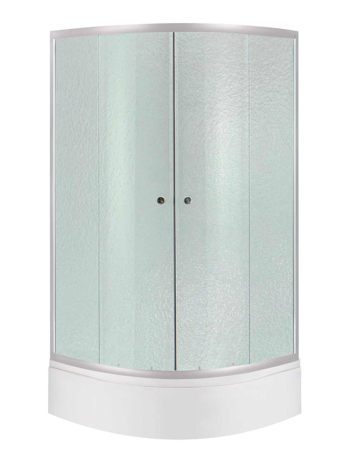 Комплектація: Профіль, подвійні ролики, ручки, комплект кріпильних деталей, глухе скло, скляні двері, піддон, сифон, ніжки, панель для піддону.