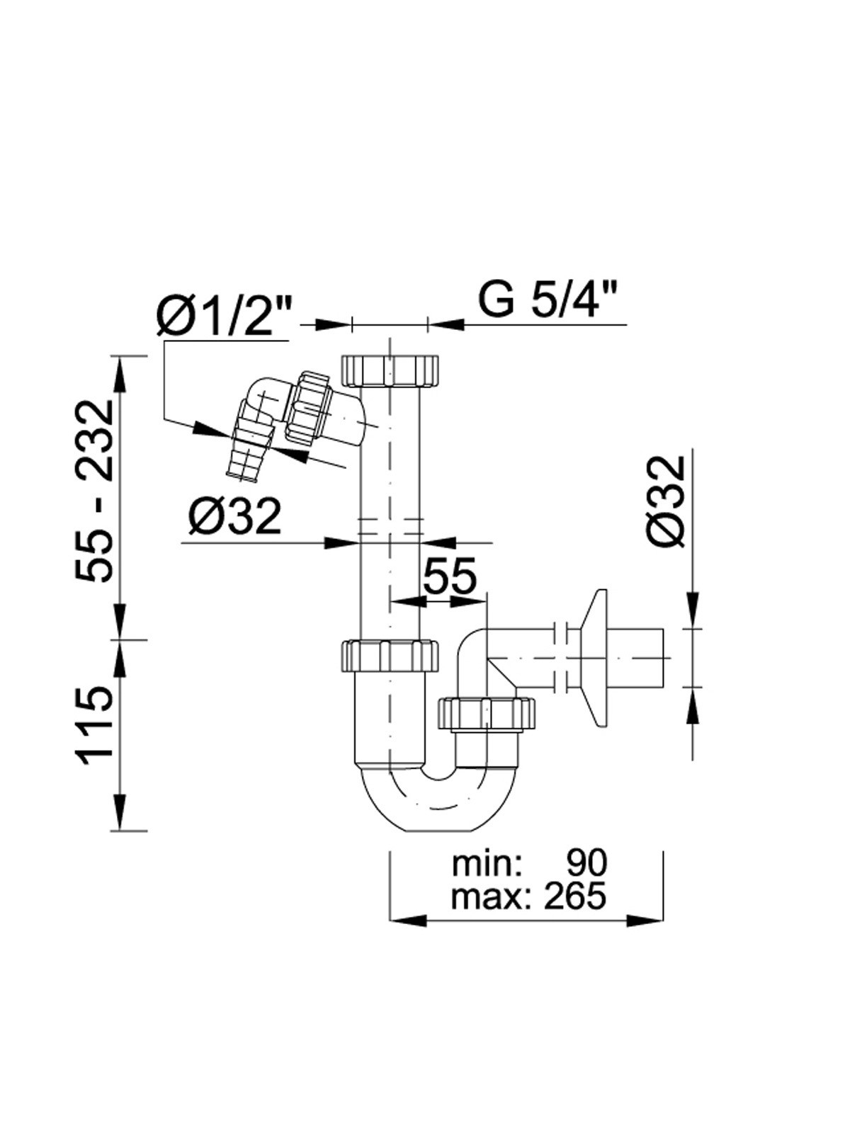 STY-638-32-2 Сифон трубний, без зливного клапана, з підключенням до посудомийної машини, вихід d32 мм (1 сорт)