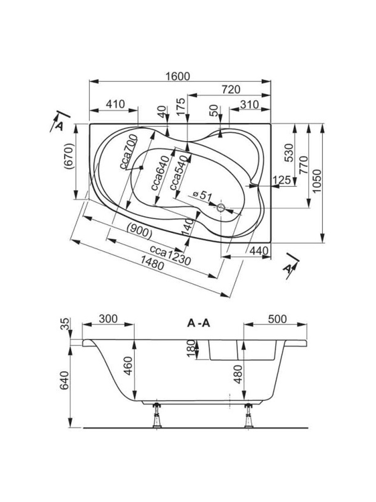 VPBA163MEL3PX-04 Melite Ванна 160x105 правостороння з панелю VPPP16009FP3 +VPSET007 ніжки, біла (1 сорт)