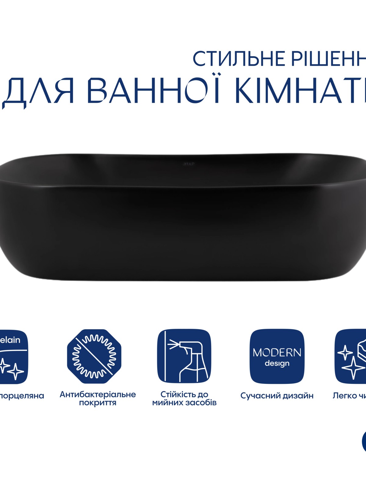 Комплект Qtap Robin: Раковина накладна прямокутна Matt Black + Донний клапан PU03: Накладна раковина в стильному матовому чорному виконанні і донний клапан PU03. Сучасний і сміливий дизайн робить цей комплект чудовим вибором для акцентного оформлення ванної кімнати.
