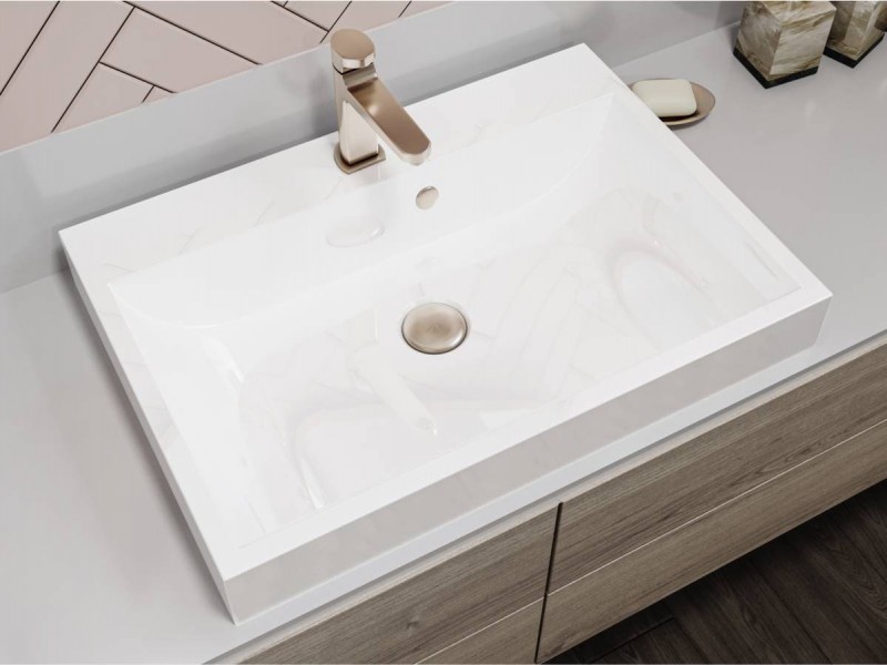 Прямокутний за формою чаші раковина має тип монтажу - врізний;на тумбу, врахуйте це перед замовленням меблів у ванну кімнату.