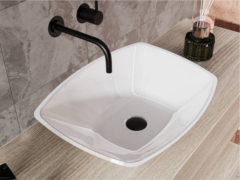 Глянец раковина зі штучного каменю гармонійно доповнить дизайн сучасної ванної кімнати. Матеріал умивальника - Miramarble.