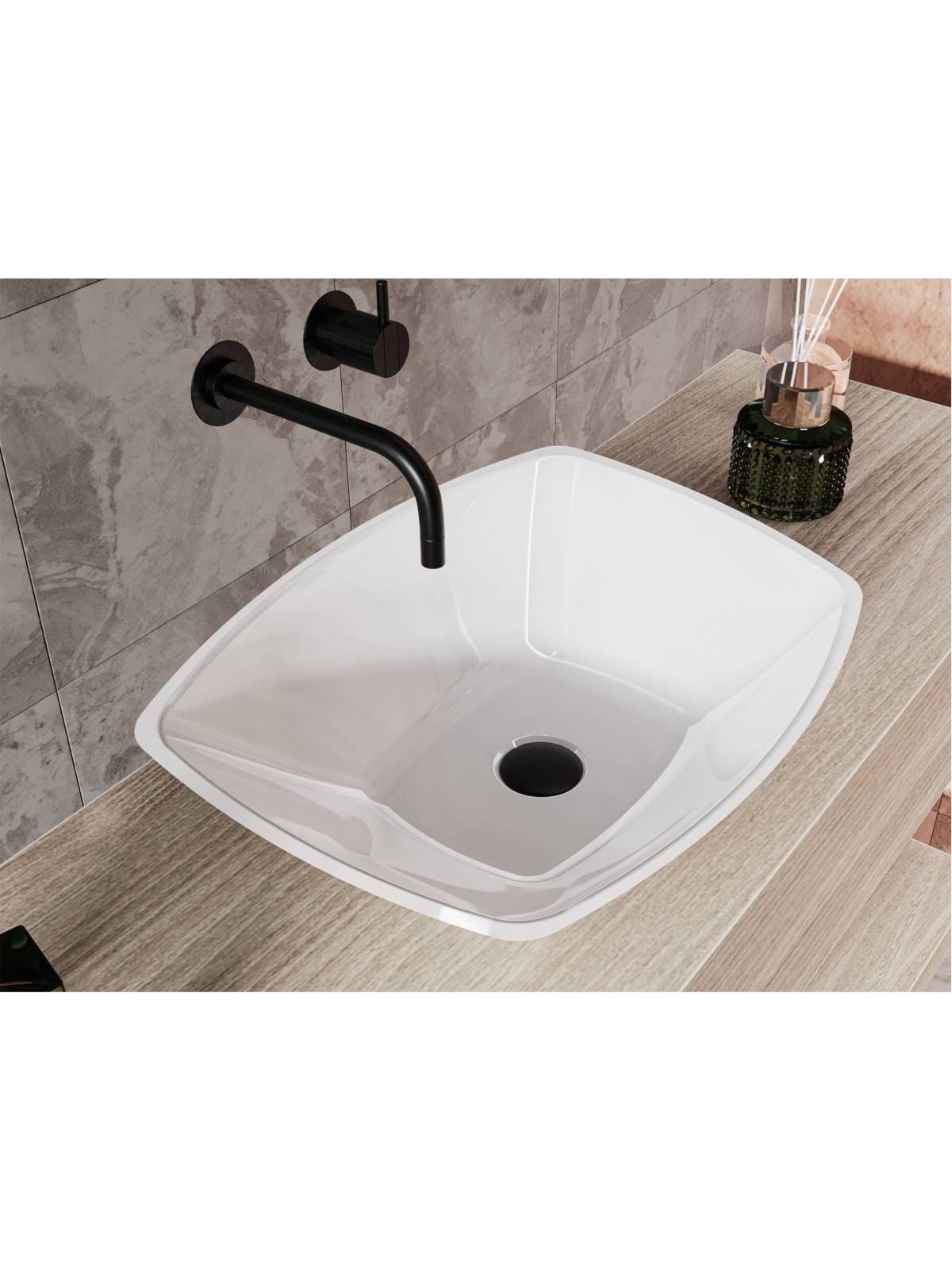 Прямокутний;Чаша за формою чаші раковина має тип монтажу - накладний, врахуйте це перед замовленням меблів у ванну кімнату.