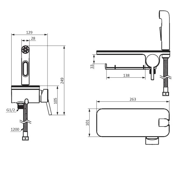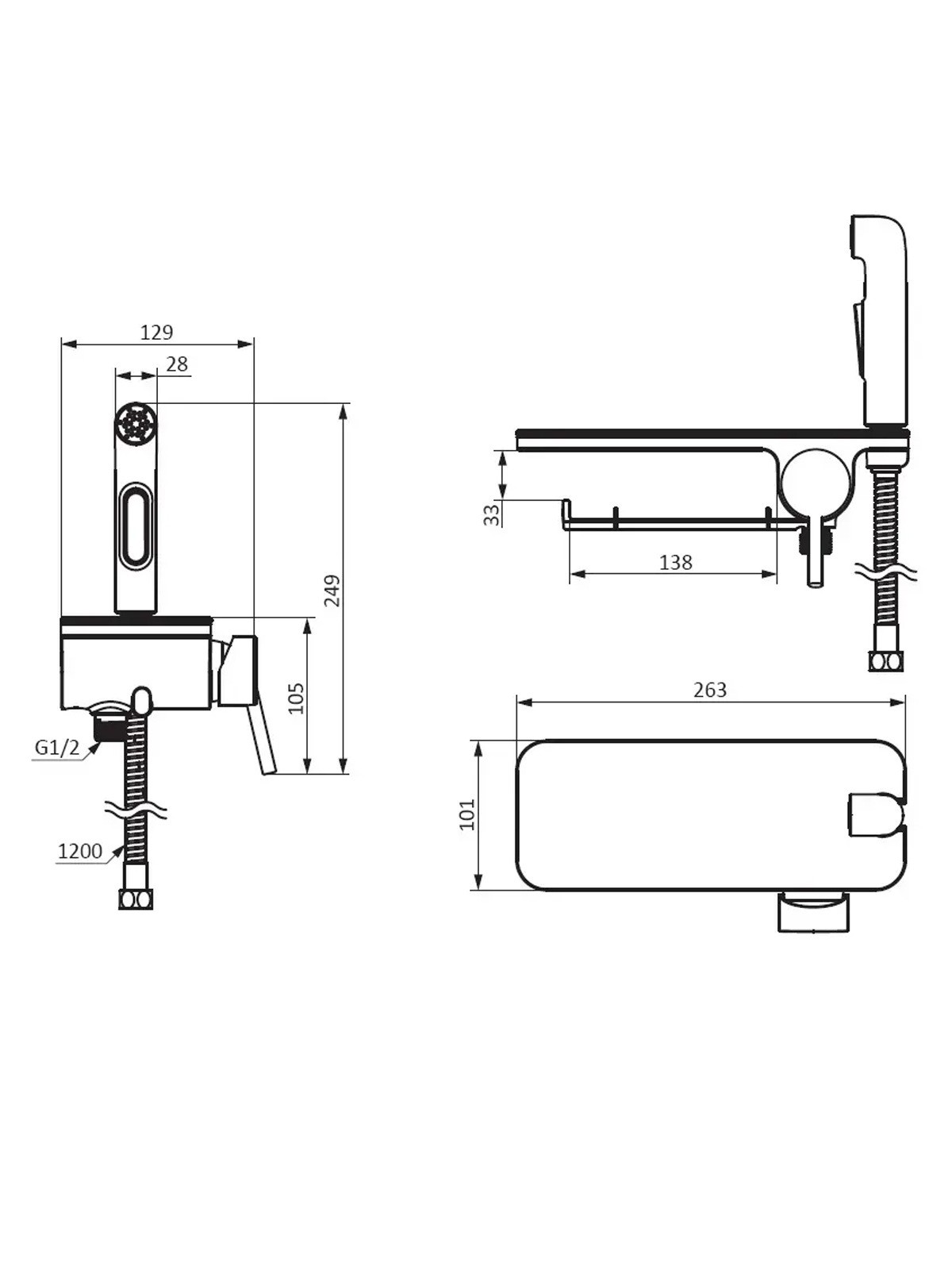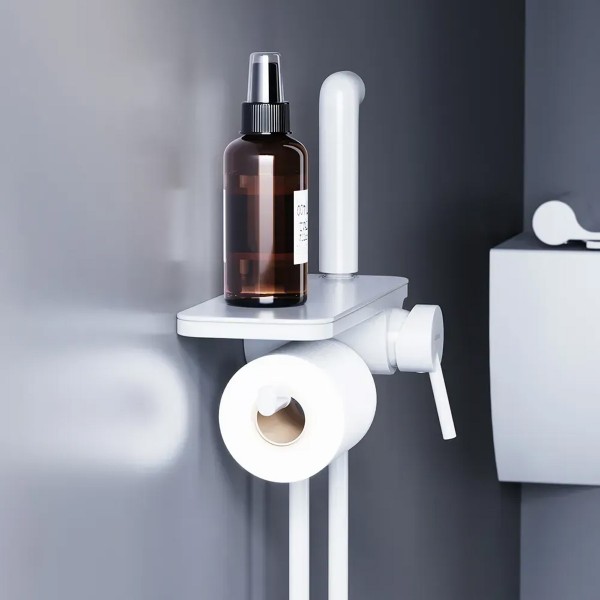 773500200 Jupiter, Вбудований в стіну змішувач з гіг душем і полицею, білий (1 сорт)