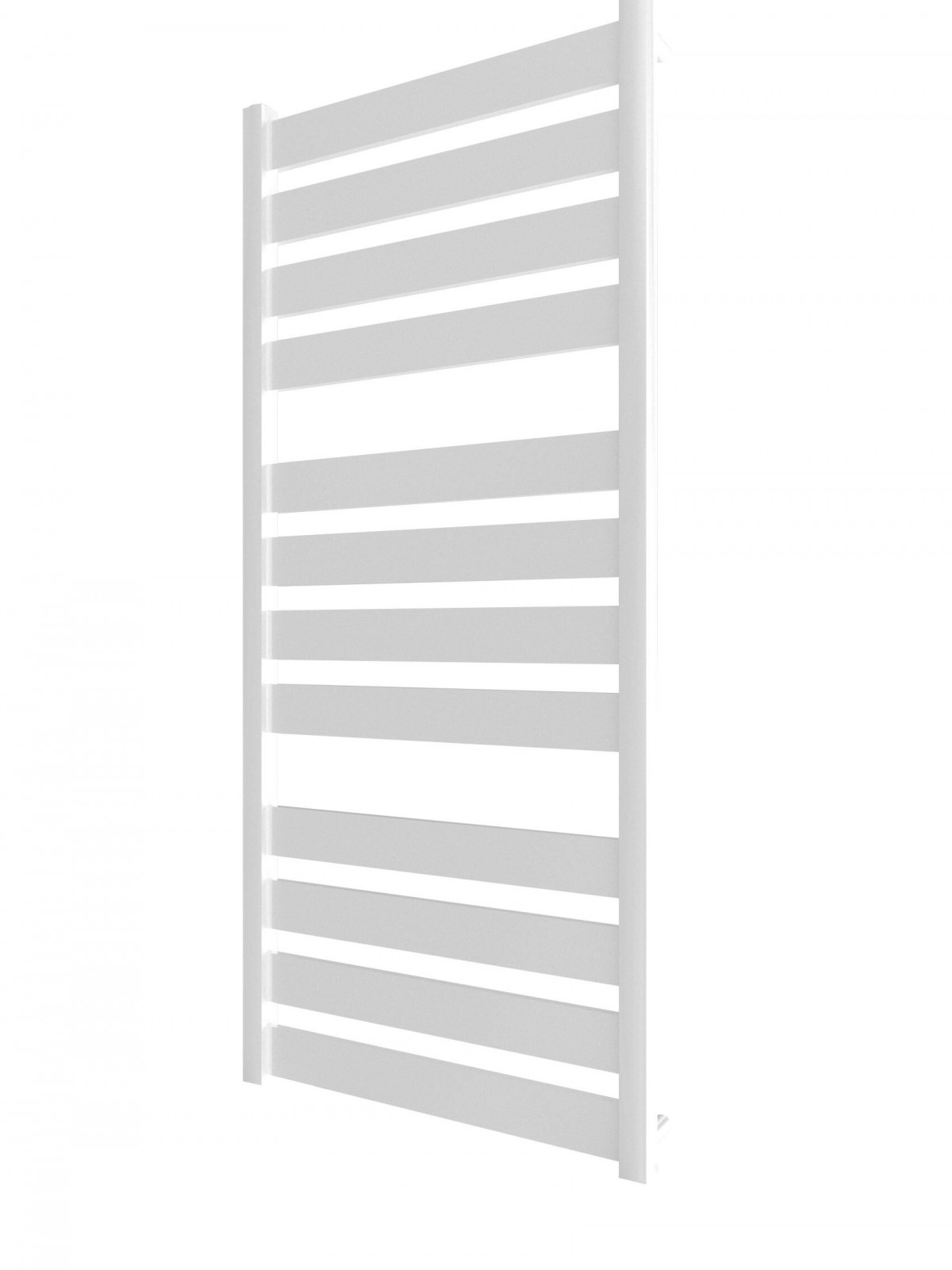 Водяна рушникосушарка INOX Санті 1170х530/500 білий глянець. Розміри: висота - 1 170 мм, ширина - 530 мм, глибина 170 мм, міжцентрова відстань для підключення - 500 мм, діаметр підключення G1/2''. Варіанти підключення: нижнє, діагональне та бічне. Кількість ребер - 12. Виготовлена з полірованої нержавіючої сталі без хромування. Для всесезонної роботи водяну модель можна переобладнати на комбіновану, встановивши ТЕН, рекомендована потужність 600 Вт. Сумісні аксесуари: поворотні полиці та навісні гачки для збільшення функціональності. Рекомендовано підключати рушникосушарку за допомогою кранів Маріо. Гарантія - 50 років в закритій системі опалення, 5 років у централізованій.