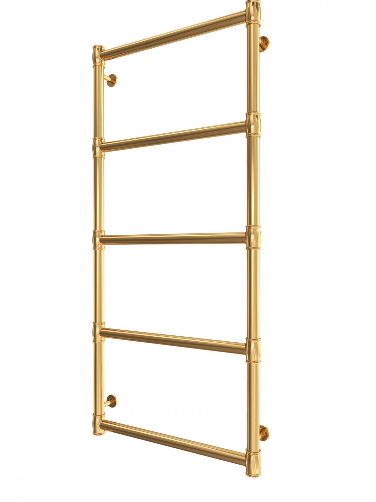Водяна рушникосушарка INOX Прованс 1170х538/500 золото лайт. Розміри: висота - 1 170 мм, ширина - 538 мм, глибина 80 мм, міжцентрова відстань для підключення - 500 мм, діаметр підключення G1/2''. Варіанти підключення: нижнє, діагональне та бічне. Кількість ребер - 5. Виготовлена з полірованої нержавіючої сталі без хромування. Для всесезонної роботи водяну модель можна переобладнати на комбіновану, встановивши ТЕН, рекомендована потужність 120 Вт. Сумісні аксесуари: поворотні полиці та навісні гачки для збільшення функціональності. Рекомендовано підключати рушникосушарку за допомогою кранів Маріо. Гарантія - 50 років в закритій системі опалення, 5 років у централізованій.