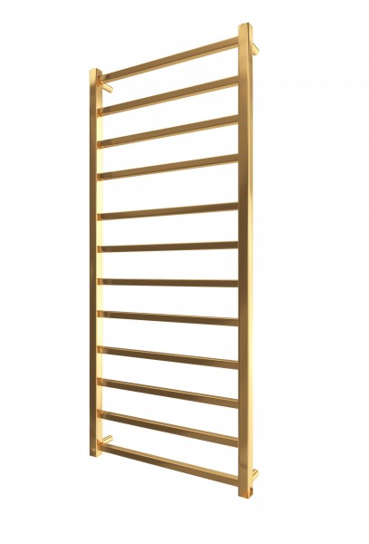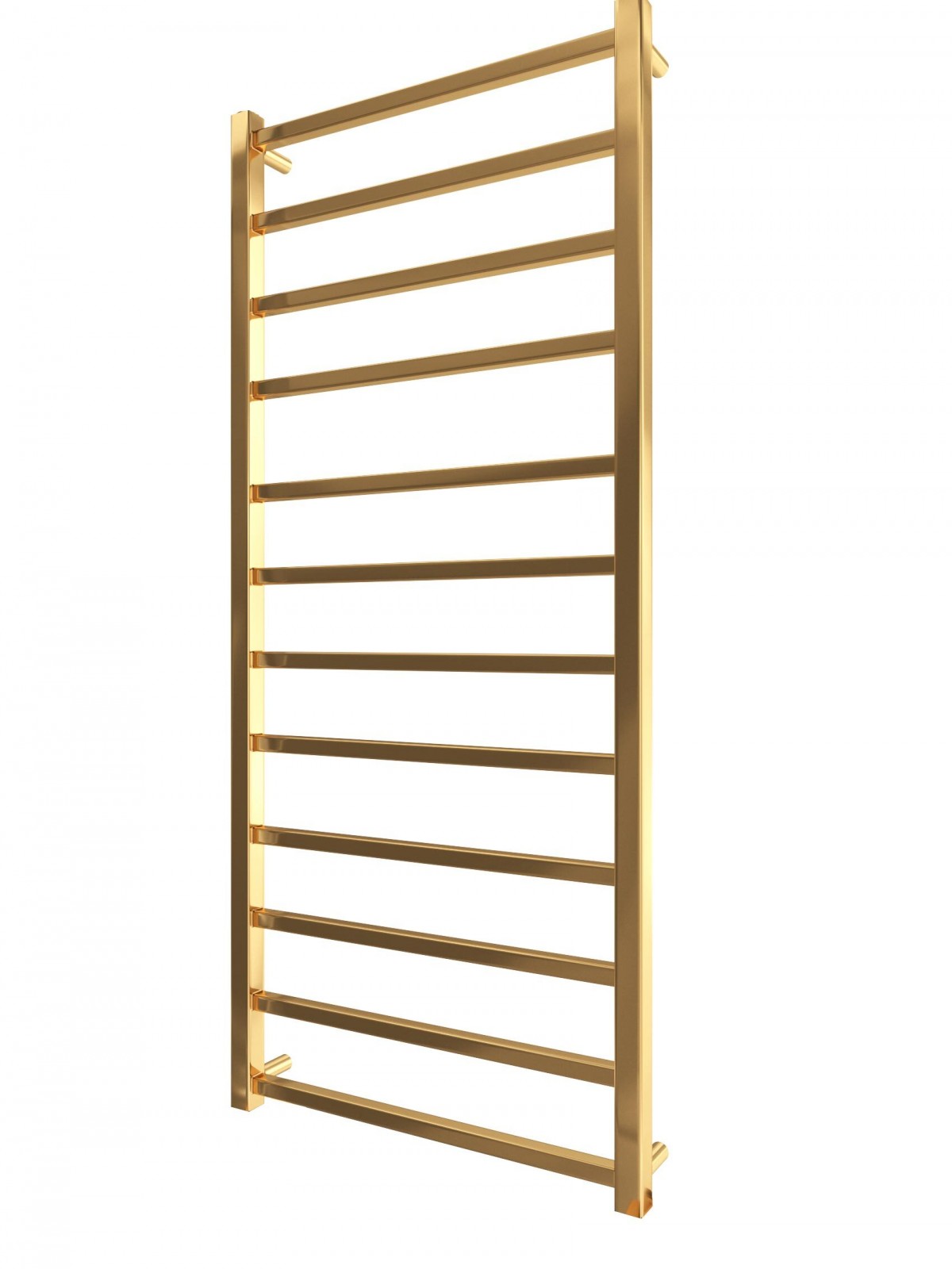 Водяна рушникосушарка INOX Токіо 1170х530/500 золото лайт. Розміри: висота - 1 170 мм, ширина - 530 мм, глибина 80 мм, міжцентрова відстань для підключення - 500 мм, діаметр підключення G1/2''. Варіанти підключення: нижнє, діагональне та бічне. Кількість ребер - 12. Виготовлена з полірованої нержавіючої сталі без хромування. Для всесезонної роботи водяну модель можна переобладнати на комбіновану, встановивши ТЕН, рекомендована потужність 600 Вт. Сумісні аксесуари: поворотні полиці та навісні гачки для збільшення функціональності. Рекомендовано підключати рушникосушарку за допомогою кранів Маріо. Гарантія - 50 років в закритій системі опалення, 5 років у централізованій.