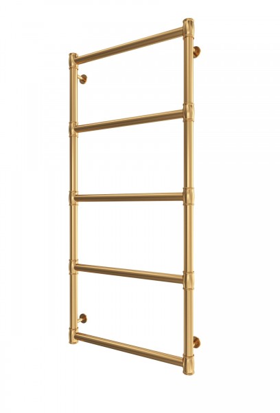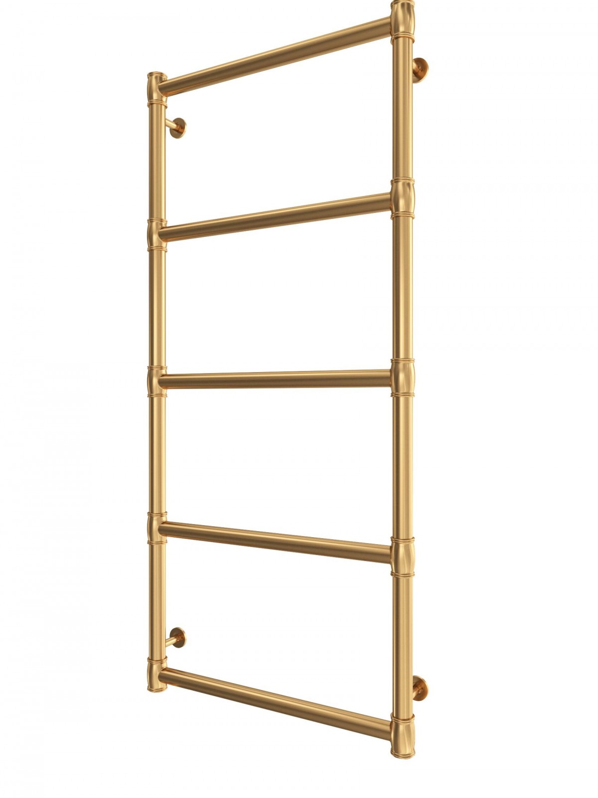 Водяна рушникосушарка INOX Прованс 1170х538/500 золото лайт сатин. Розміри: висота - 1 170 мм, ширина - 538 мм, глибина 80 мм, міжцентрова відстань для підключення - 500 мм, діаметр підключення G1/2''. Варіанти підключення: нижнє, діагональне та бічне. Кількість ребер - 5. Виготовлена з полірованої нержавіючої сталі без хромування. Для всесезонної роботи водяну модель можна переобладнати на комбіновану, встановивши ТЕН, рекомендована потужність 120 Вт. Сумісні аксесуари: поворотні полиці та навісні гачки для збільшення функціональності. Рекомендовано підключати рушникосушарку за допомогою кранів Маріо. Гарантія - 50 років в закритій системі опалення, 5 років у централізованій.