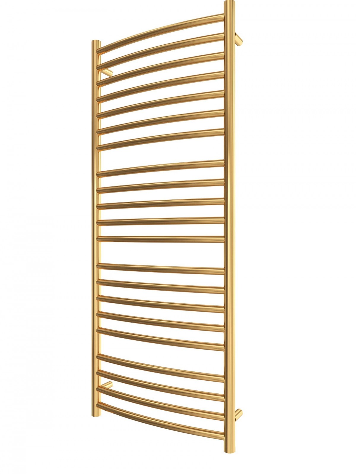 Водяна рушникосушарка INOX Фенікс 1170х530/500 золото лайт сатин. Розміри: висота - 1 170 мм, ширина - 530 мм, глибина 80 мм, міжцентрова відстань для підключення - 500 мм, діаметр підключення G1/2''. Варіанти підключення: нижнє, діагональне та бічне. Кількість ребер - 21. Виготовлена з полірованої нержавіючої сталі без хромування. Для всесезонної роботи водяну модель можна переобладнати на комбіновану, встановивши ТЕН, рекомендована потужність 600 Вт. Сумісні аксесуари: поворотні полиці та навісні гачки для збільшення функціональності. Рекомендовано підключати рушникосушарку за допомогою кранів Маріо. Гарантія - 50 років в закритій системі опалення, 5 років у централізованій.