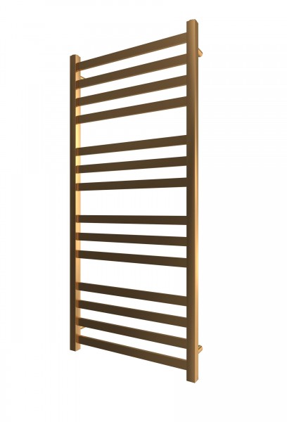 Водяна рушникосушарка INOX Чикаго 1170х530/500 золото лайт сатин. Розміри: висота - 1 170 мм, ширина - 530 мм, глибина 85 мм, міжцентрова відстань для підключення - 500 мм, діаметр підключення G1/2''. Варіанти підключення: нижнє, діагональне та бічне. Кількість ребер - 12. Виготовлена з полірованої нержавіючої сталі без хромування. Для всесезонної роботи водяну модель можна переобладнати на комбіновану, встановивши ТЕН, рекомендована потужність 600 Вт. Сумісні аксесуари: поворотні полиці та навісні гачки для збільшення функціональності. Рекомендовано підключати рушникосушарку за допомогою кранів Маріо. Гарантія - 50 років в закритій системі опалення, 5 років у централізованій.