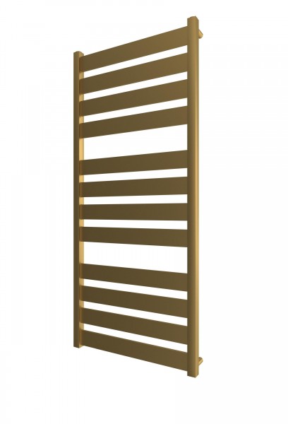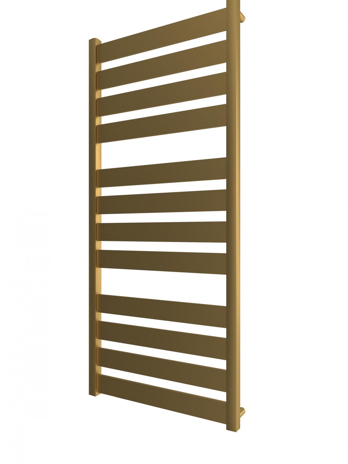 Водяна рушникосушарка INOX Санті 1170х530/500 золото сатин. Розміри: висота - 1 170 мм, ширина - 530 мм, глибина 170 мм, міжцентрова відстань для підключення - 500 мм, діаметр підключення G1/2''. Варіанти підключення: нижнє, діагональне та бічне. Кількість ребер - 12. Виготовлена з полірованої нержавіючої сталі без хромування. Для всесезонної роботи водяну модель можна переобладнати на комбіновану, встановивши ТЕН, рекомендована потужність 600 Вт. Сумісні аксесуари: поворотні полиці та навісні гачки для збільшення функціональності. Рекомендовано підключати рушникосушарку за допомогою кранів Маріо. Гарантія - 50 років в закритій системі опалення, 5 років у централізованій.