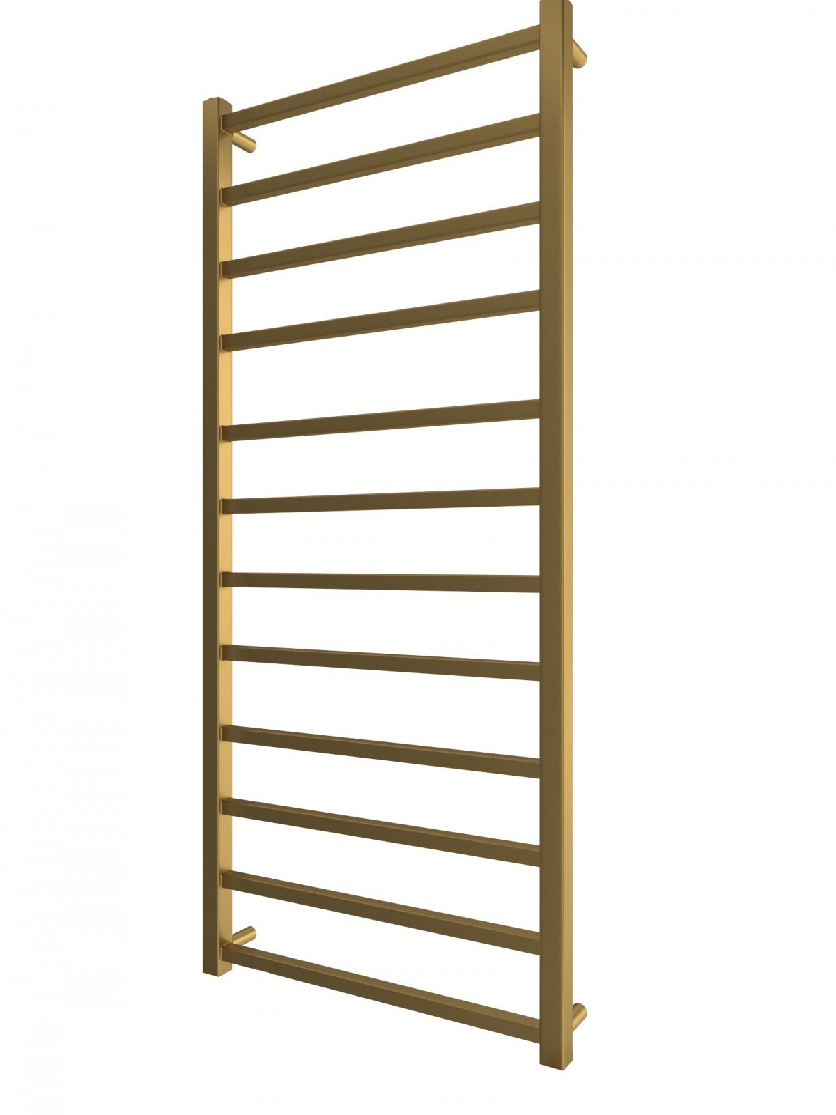 Водяна рушникосушарка INOX Токіо 1170х530/500 золото сатин. Розміри: висота - 1 170 мм, ширина - 530 мм, глибина 80 мм, міжцентрова відстань для підключення - 500 мм, діаметр підключення G1/2''. Варіанти підключення: нижнє, діагональне та бічне. Кількість ребер - 12. Виготовлена з полірованої нержавіючої сталі без хромування. Для всесезонної роботи водяну модель можна переобладнати на комбіновану, встановивши ТЕН, рекомендована потужність 600 Вт. Сумісні аксесуари: поворотні полиці та навісні гачки для збільшення функціональності. Рекомендовано підключати рушникосушарку за допомогою кранів Маріо. Гарантія - 50 років в закритій системі опалення, 5 років у централізованій.