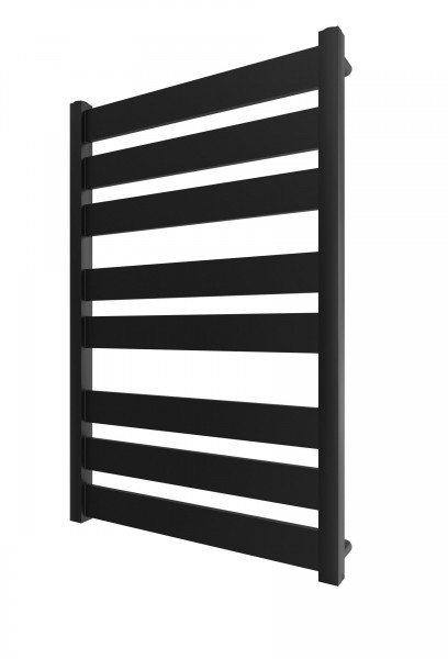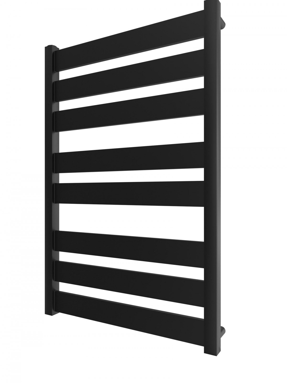 Водяна рушникосушарка INOX Санті 770х530/500 чорний мат. Розміри: висота - 770 мм, ширина - 530 мм, глибина 80 мм, міжцентрова відстань для підключення - 500 мм, діаметр підключення G1/2''. Варіанти підключення: нижнє, діагональне та бічне. Кількість ребер - 8. Виготовлена з полірованої нержавіючої сталі без хромування. Для всесезонної роботи водяну модель можна переобладнати на комбіновану, встановивши ТЕН, рекомендована потужність 300 Вт. Сумісні аксесуари: поворотні полиці та навісні гачки для збільшення функціональності. Рекомендовано підключати рушникосушарку за допомогою кранів Маріо. Гарантія - 50 років в закритій системі опалення, 5 років у централізованій.