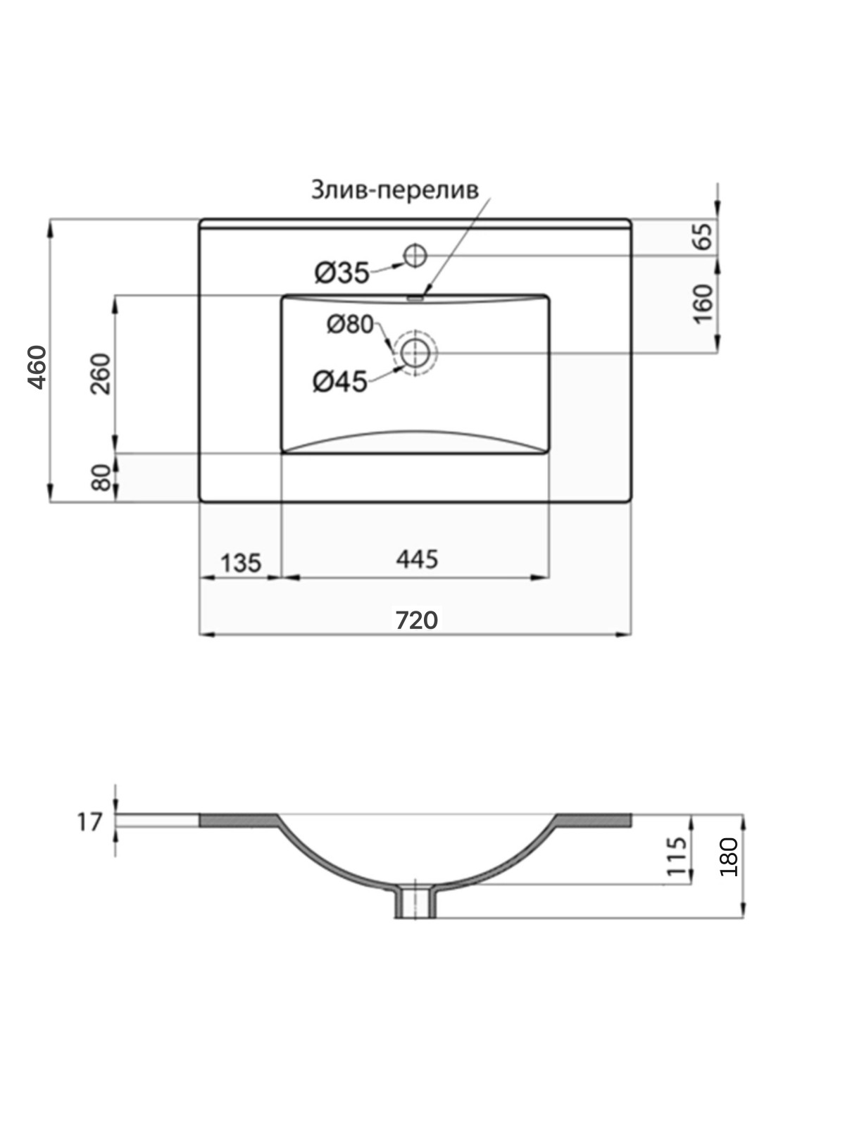 Габаритні розміри виробу (ШхГхВ), мм: 720x460x180