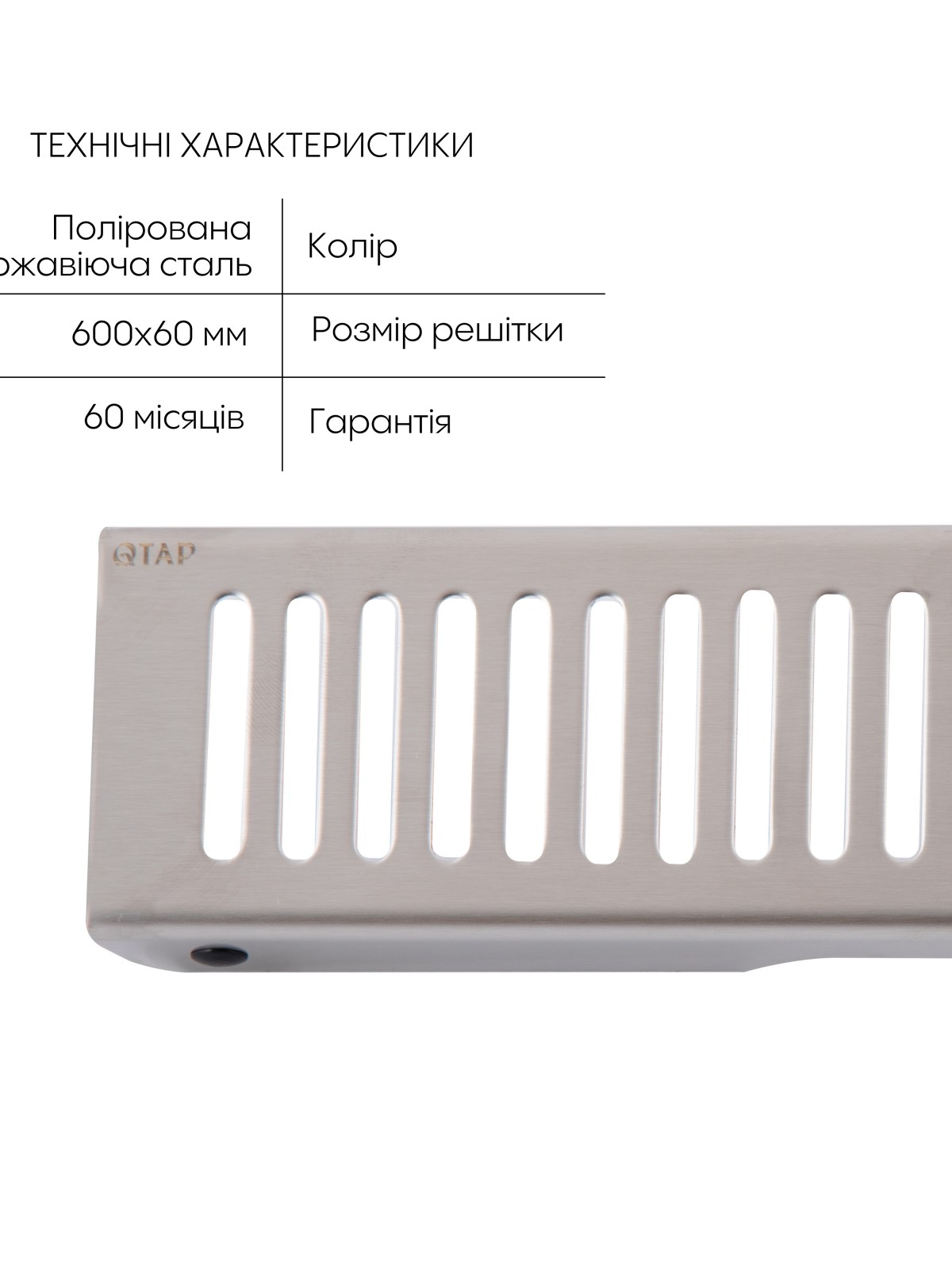Лінійний трап Qtap Scorpio FA800 QTSCOFA600 допоможе облаштувати сучасну душову зону без застосування душового піддону на рівні зі підлогою. Корпус виробу виготовлений із нержавіючої сталі AISI 304, а сифон namp;#8211; з якісного пластику. Завдяки сухому затвору неприємний запах не проникатиме у приміщення з каналізації.