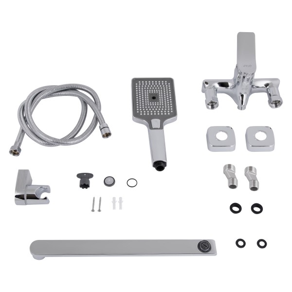 Комплектація: Змішувач, лійка для ручного душу, душовий шланг, кронштейн, деталі кріплення.
