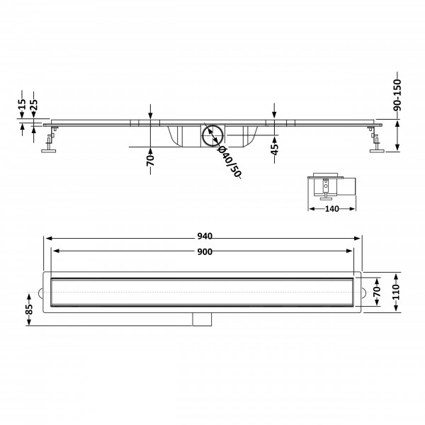Розмір решітки, мм: 900х60