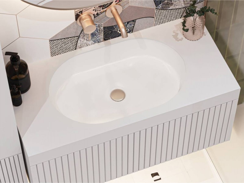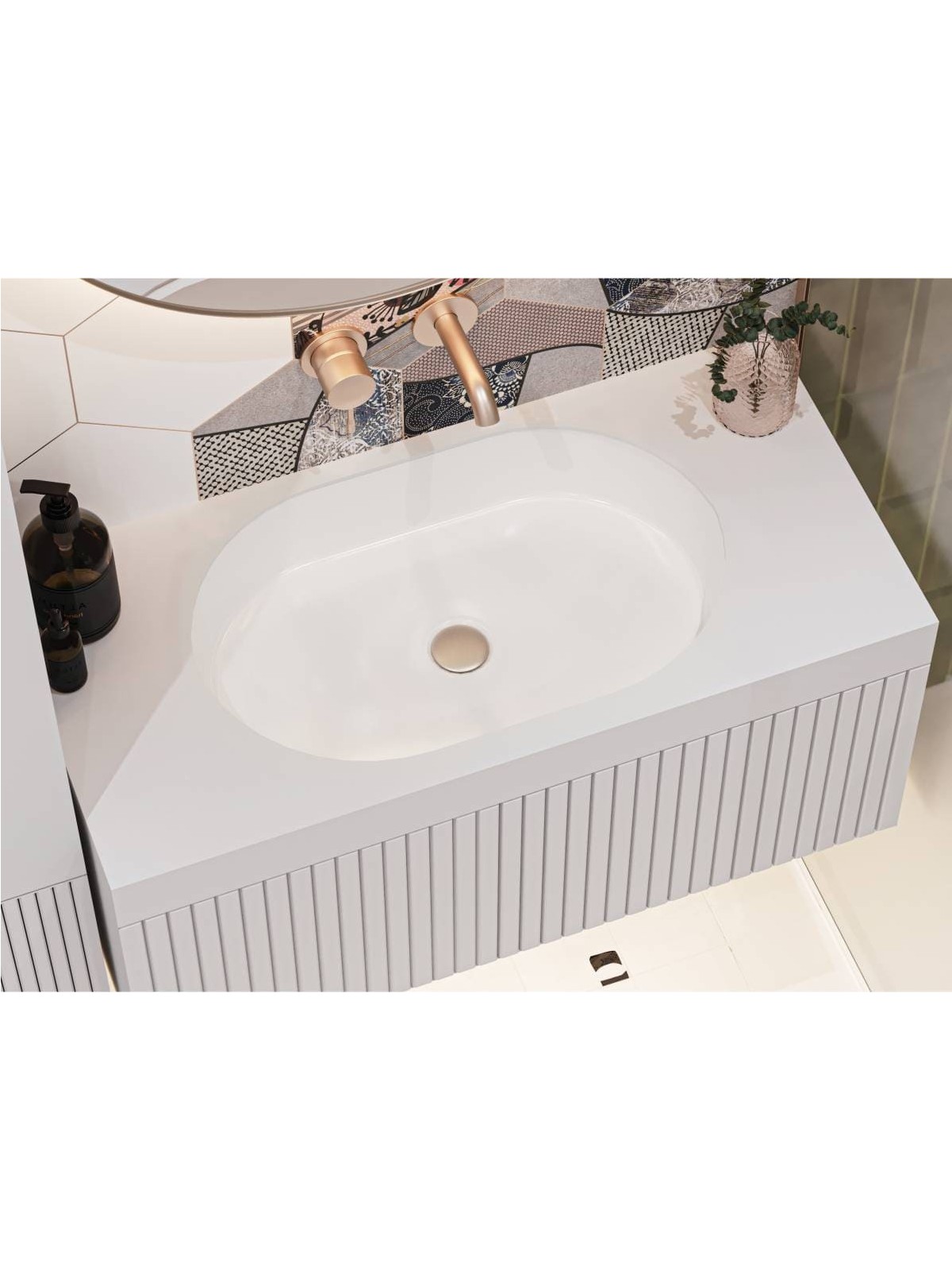 Овальний за формою чаші раковина має тип монтажу - під стільницю, врахуйте це перед замовленням меблів у ванну кімнату.
