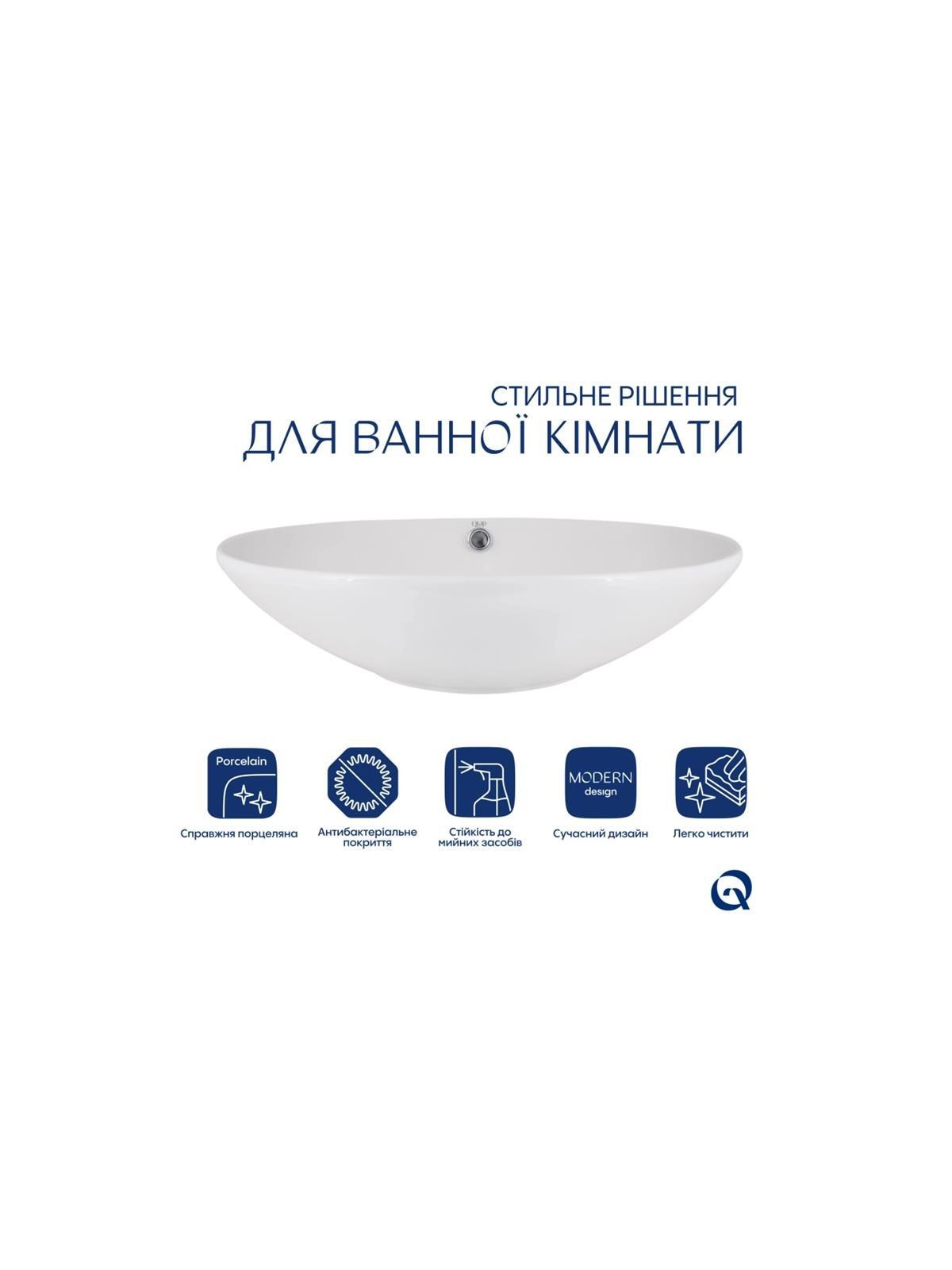 Комплект Qtap Dove: Раковина накладна овальна White + Донний клапан PU02O: У цьому наборі представлена велика овальна раковина у білому кольорі та донний клапан PU02O. Її елегантна форма і місткість забезпечують комфорт в експлуатації, роблячи комплект ідеальним для просторих ванних кімнат.