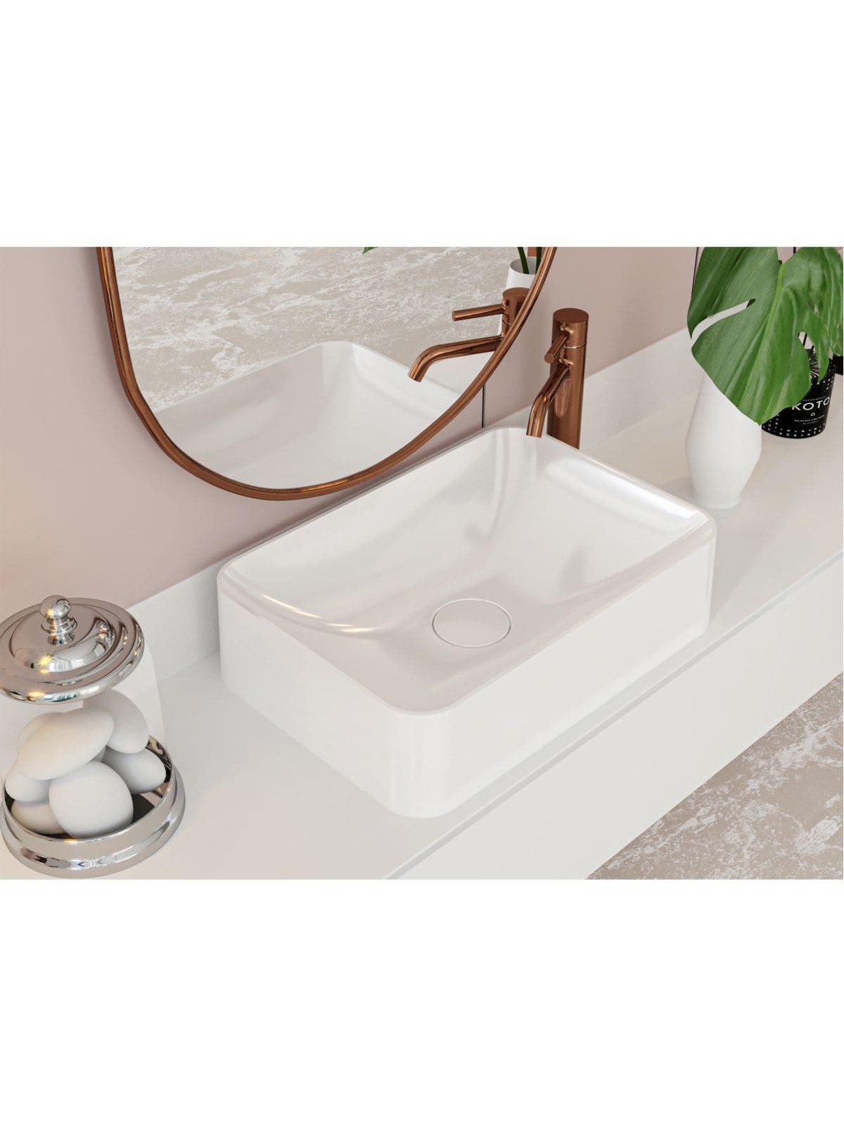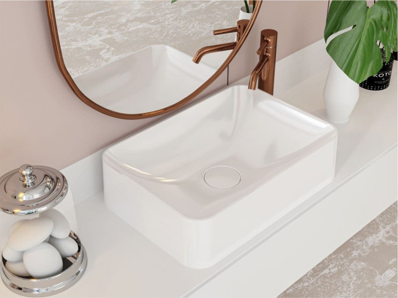 Прямокутний за формою чаші раковина має тип монтажу - накладний, врахуйте це перед замовленням меблів у ванну кімнату.