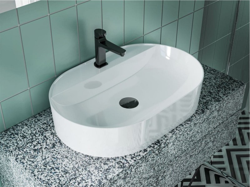 Овальний за формою чаші раковина має тип монтажу - накладний, врахуйте це перед замовленням меблів у ванну кімнату.
